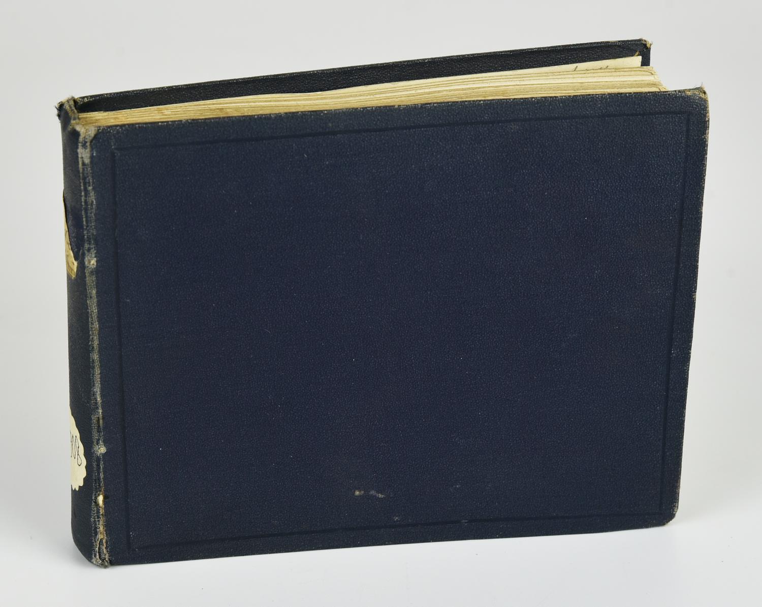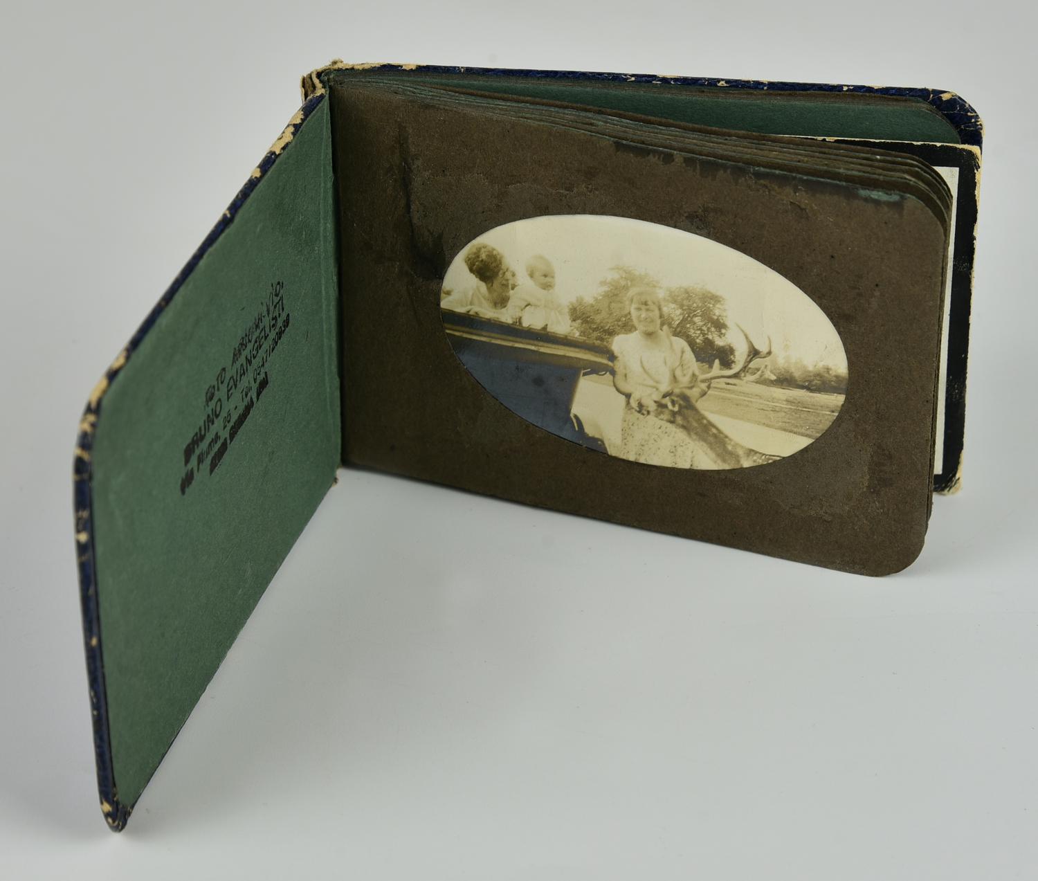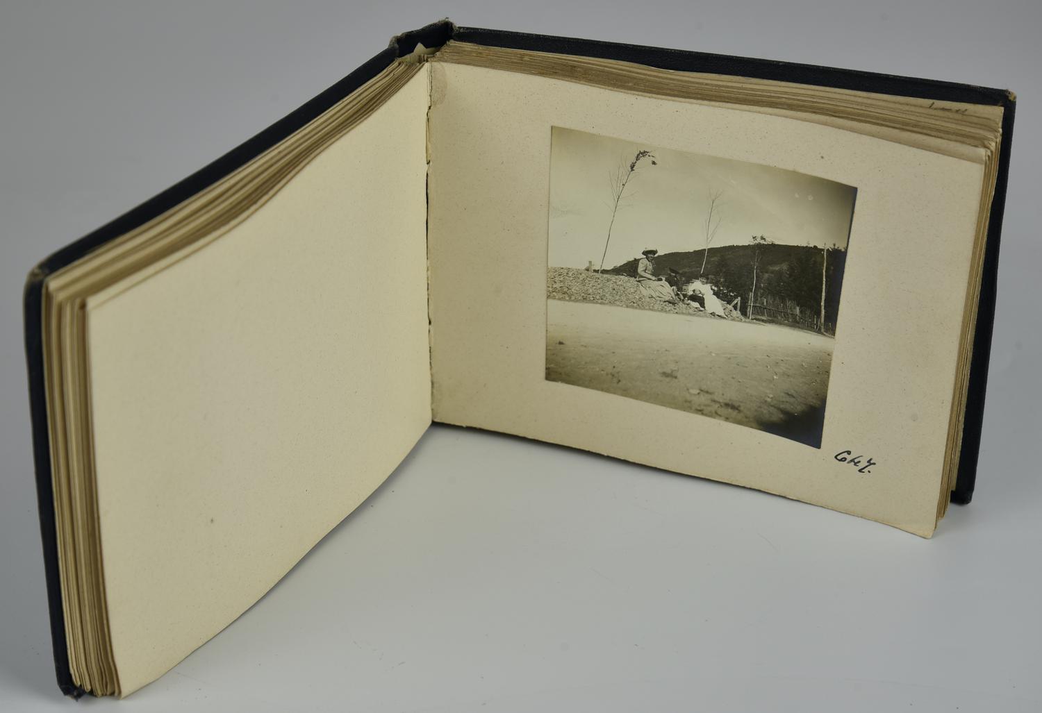 - album fotografico con rilegatura in cartone rigido blu, datato 1908