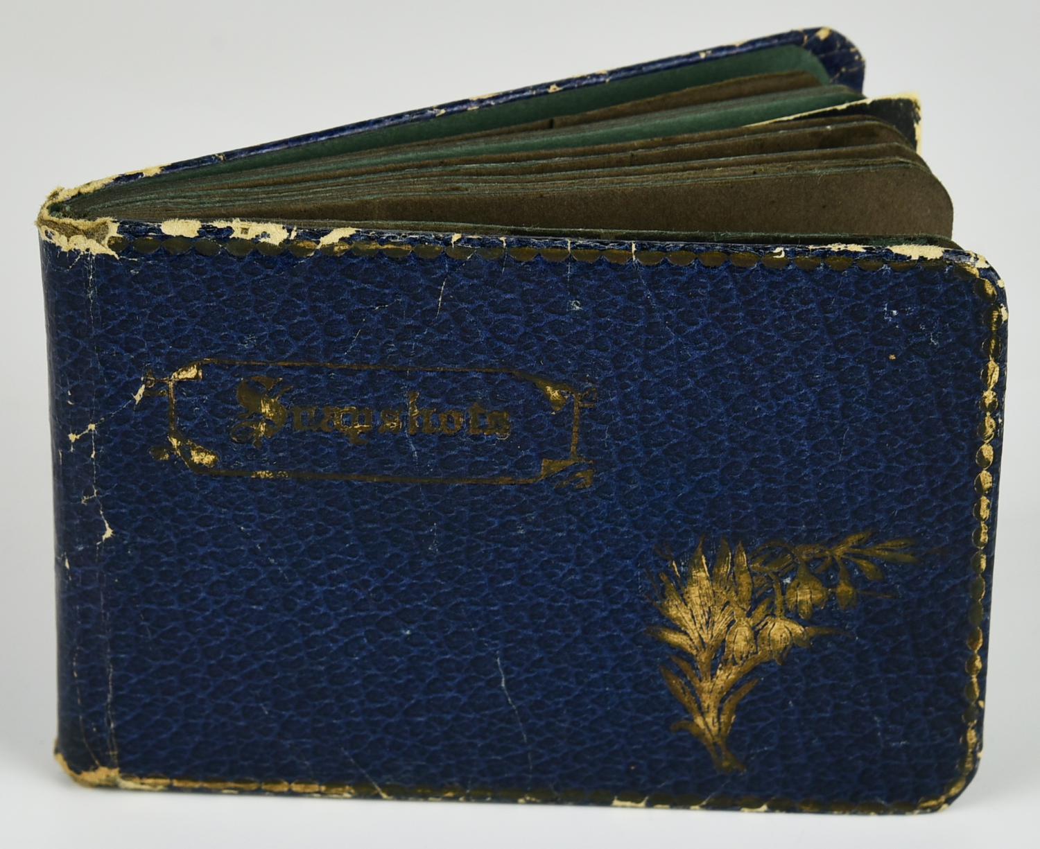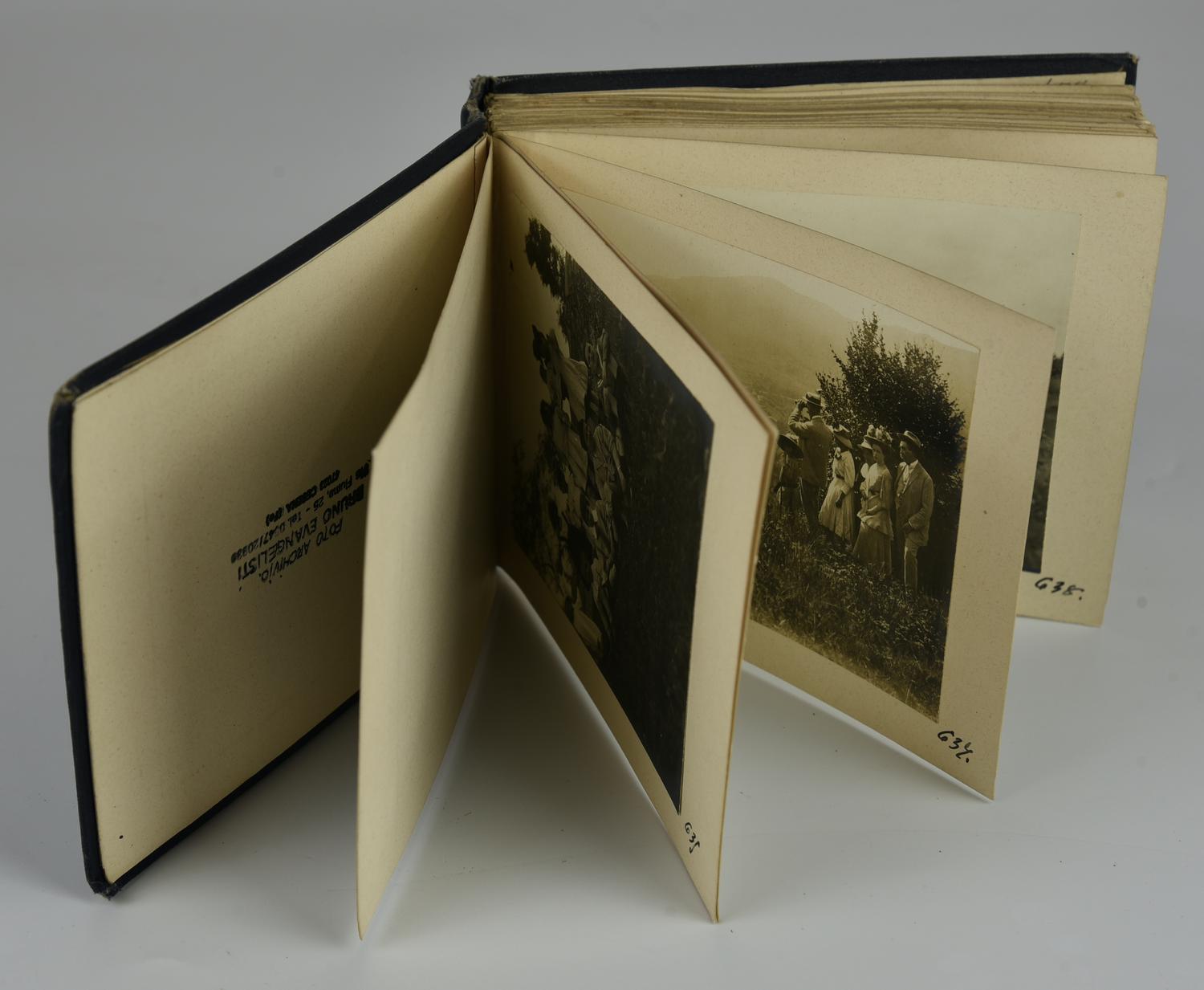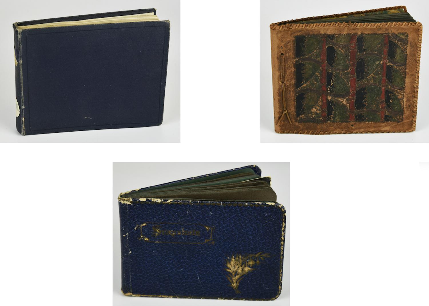 - album fotografico con rilegatura in cartone rigido blu, datato 1908