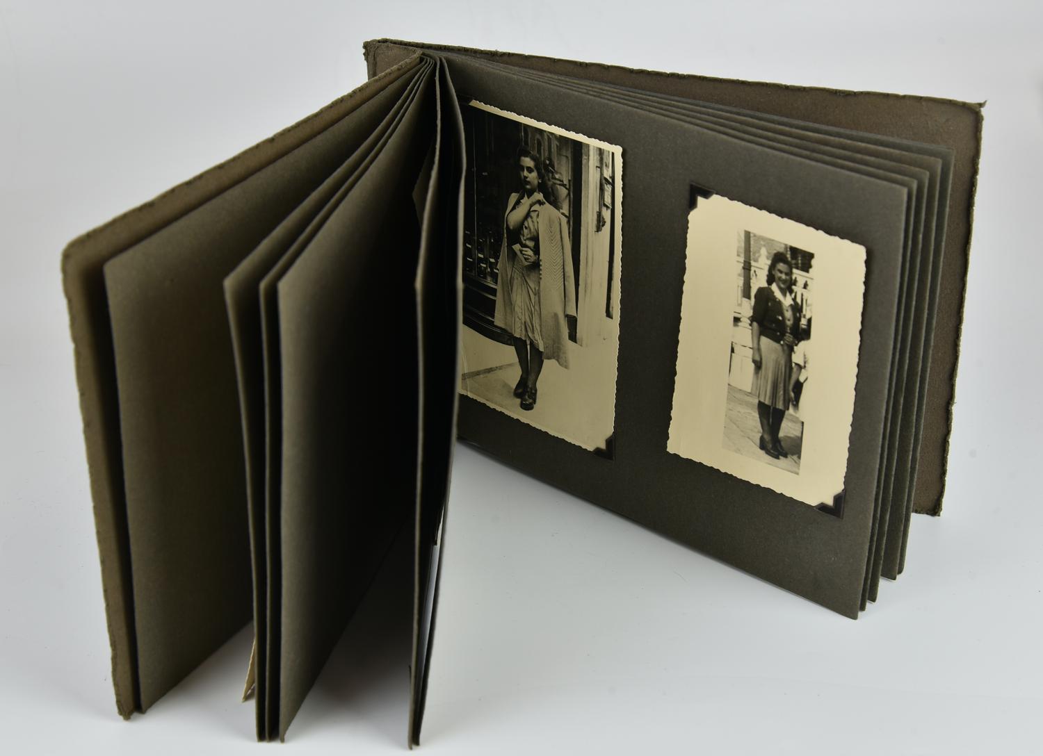 - album fotografico con rilegatura in cartoncino, contenente fotografie amatoriali datate 1924-1926, cm 15x23