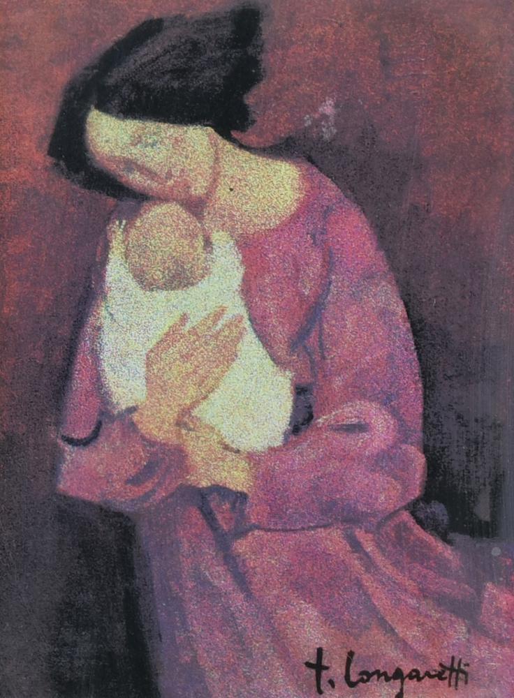 Trento Longaretti MATERNITÀ, 1984 lito-serigrafia su lastra, cm 18x24; es....