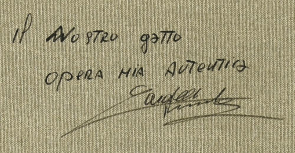Raimondo Cardelli IL NOSTRO GATTO olio su tela, cm 50x60 firma sul retro:...