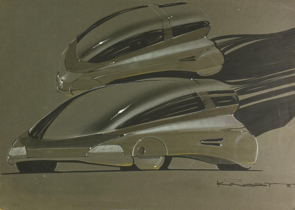 Kinsey AUTOMOBILI, 1988 tecnica mista su carta, cm 50x65 firma e data difetti