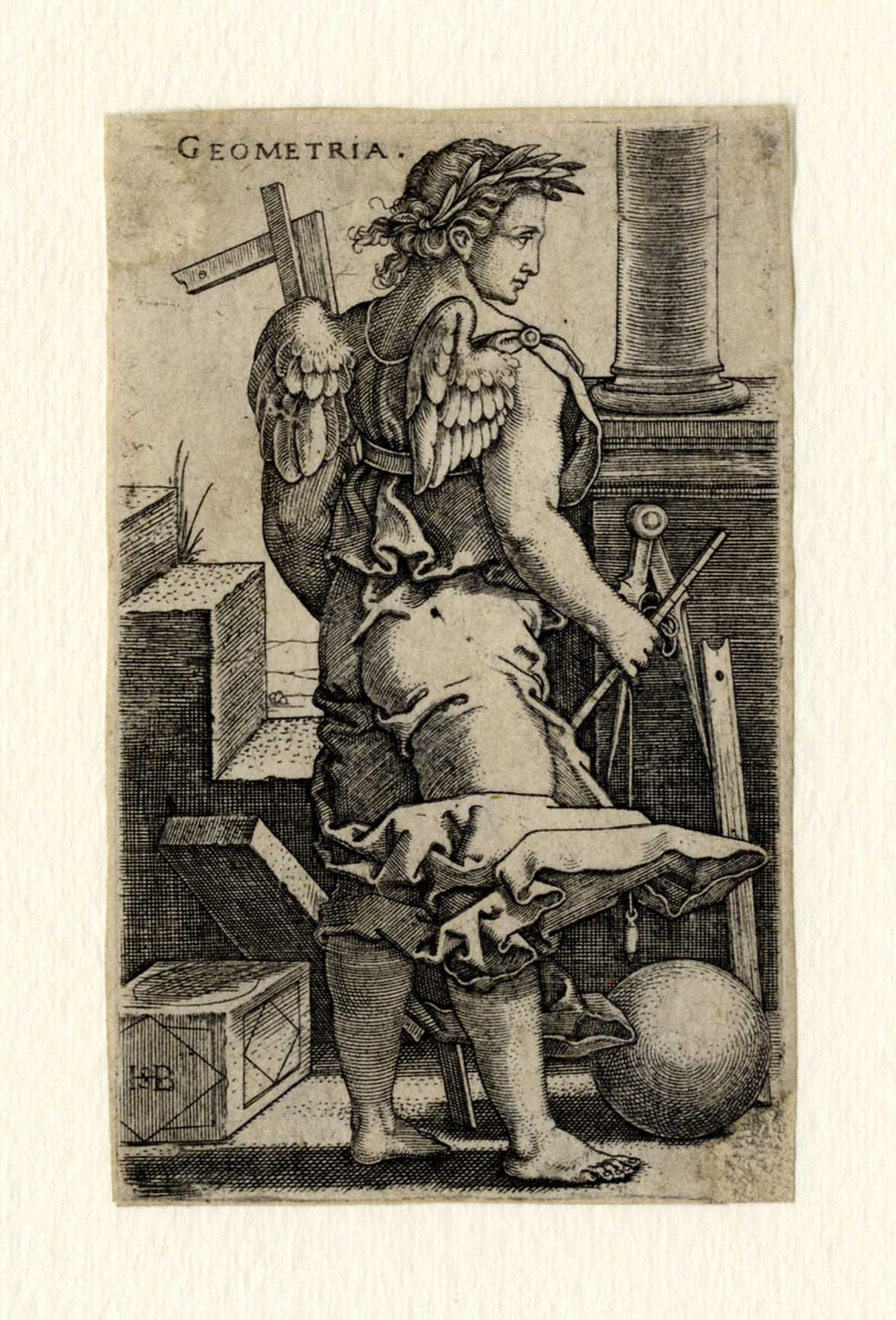 Hans Sebald Beham, Geometria. 1519. Bulino. mm 90x55. Foglio: mm 92x58....