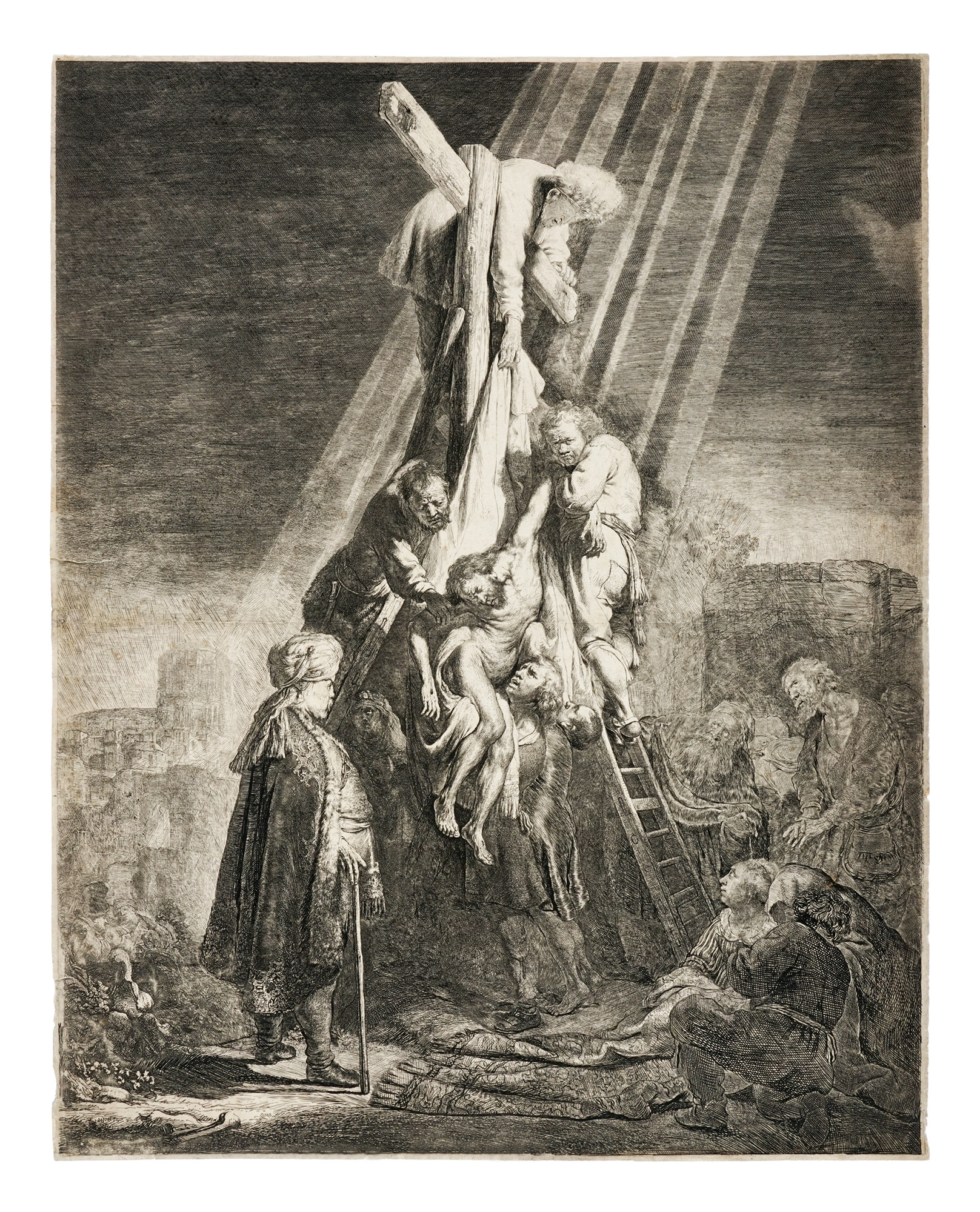 Rembrandt Harmenszoon van Rijn, La grande deposizione dalla croce. Seconda lastra. 1633.