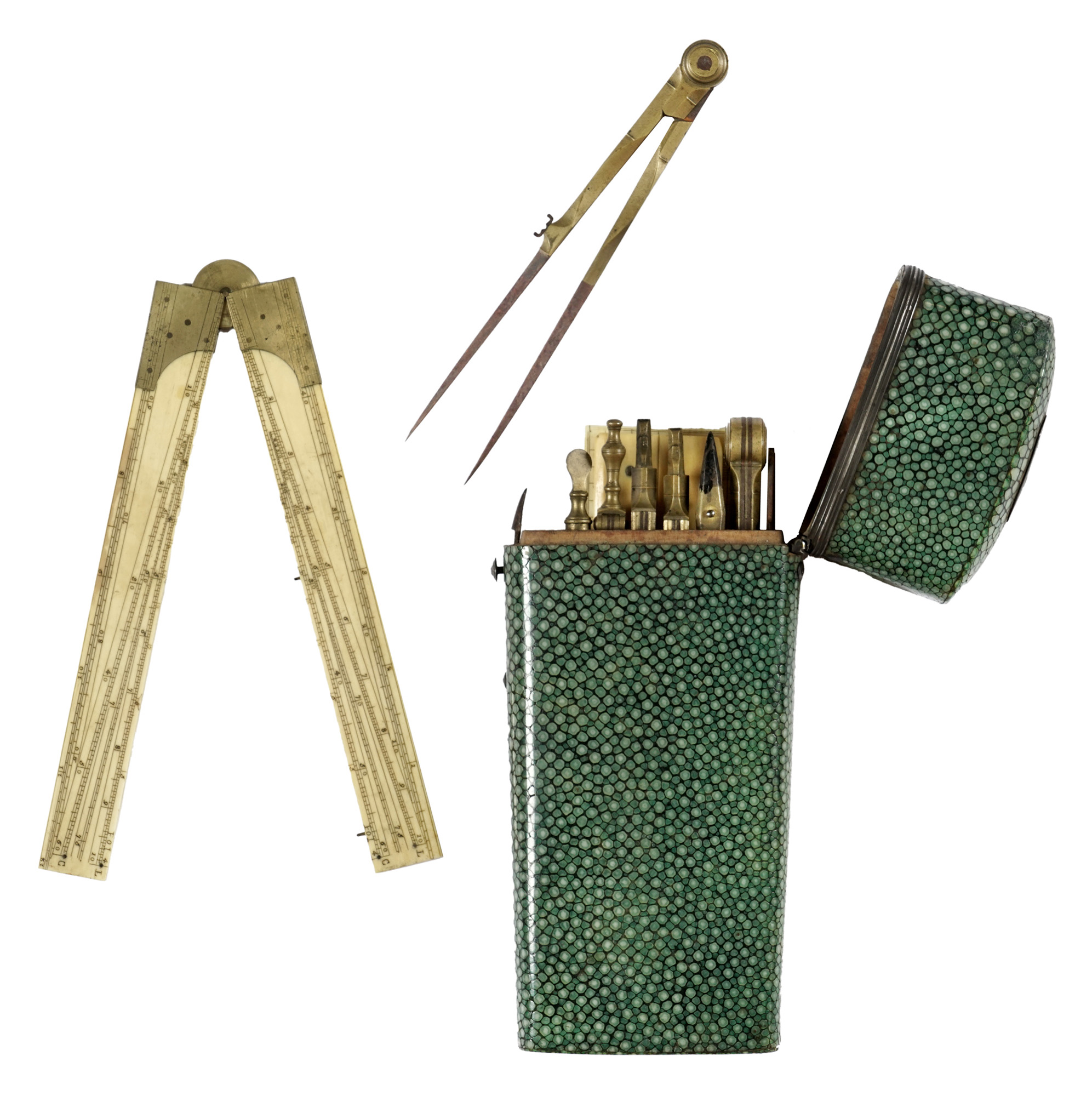 Kit da disegno per architetto in custodia rigida. Inizio XIX secolo.