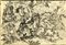 Xilografia in nero (sumizuri-e). Due tavole a pagina doppia (mm 220x284).A quarant'anni, Hokusai, insieme al romanziere Takizawa Bakin (1767–1848), si dedicò al genere di letteratura popolare stampata chiamata yomihon, letteralmente "libri da leggere". Si trattava di storie di avventure illustrate, pubblicate a puntate, che traducevano e adattavano storie cinesi o tessevano storie colorate basate su personaggi storici giapponesi, in questo caso il guerriero samurai Minamoto no Tametomo (1139–1170). Chinsetsu yumiharizuki, 1807–1811, arrivò infine a ventinove volumi facendo la fortuna dell'editore Hirabayashi Shōgorō. (2) Tavole inserite in montaggio moderno in cartoncino. Buona conservazione.