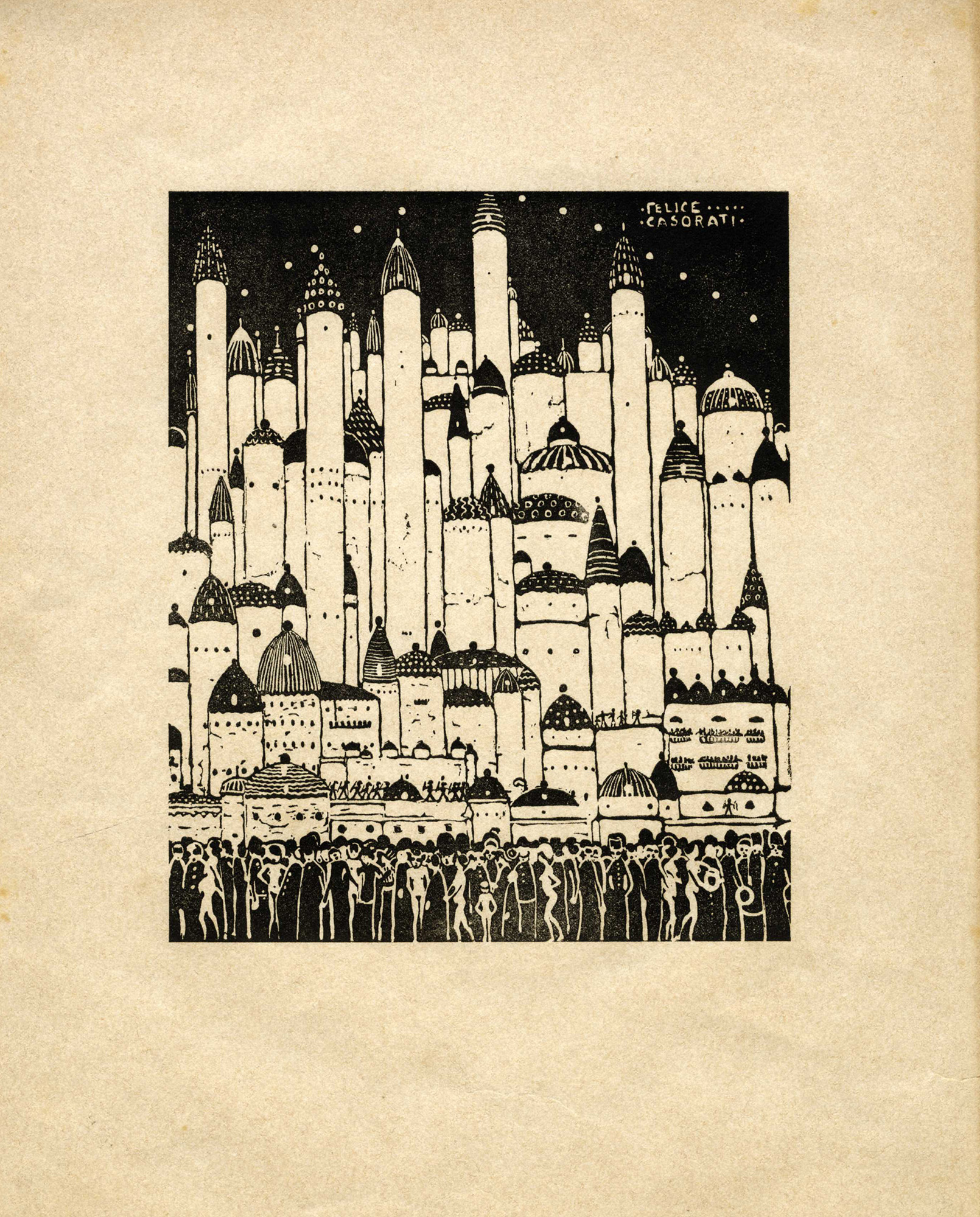 Felice Casorati, Visione (La città). 1913. Xilografia. mm 178x150. Foglio: mm...