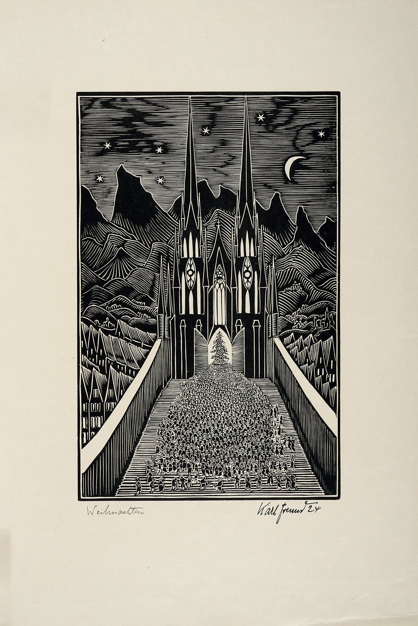 Karl Freund, Lotto composto di 3 incisioni. 1924. Raccolta di 3 xilografie....