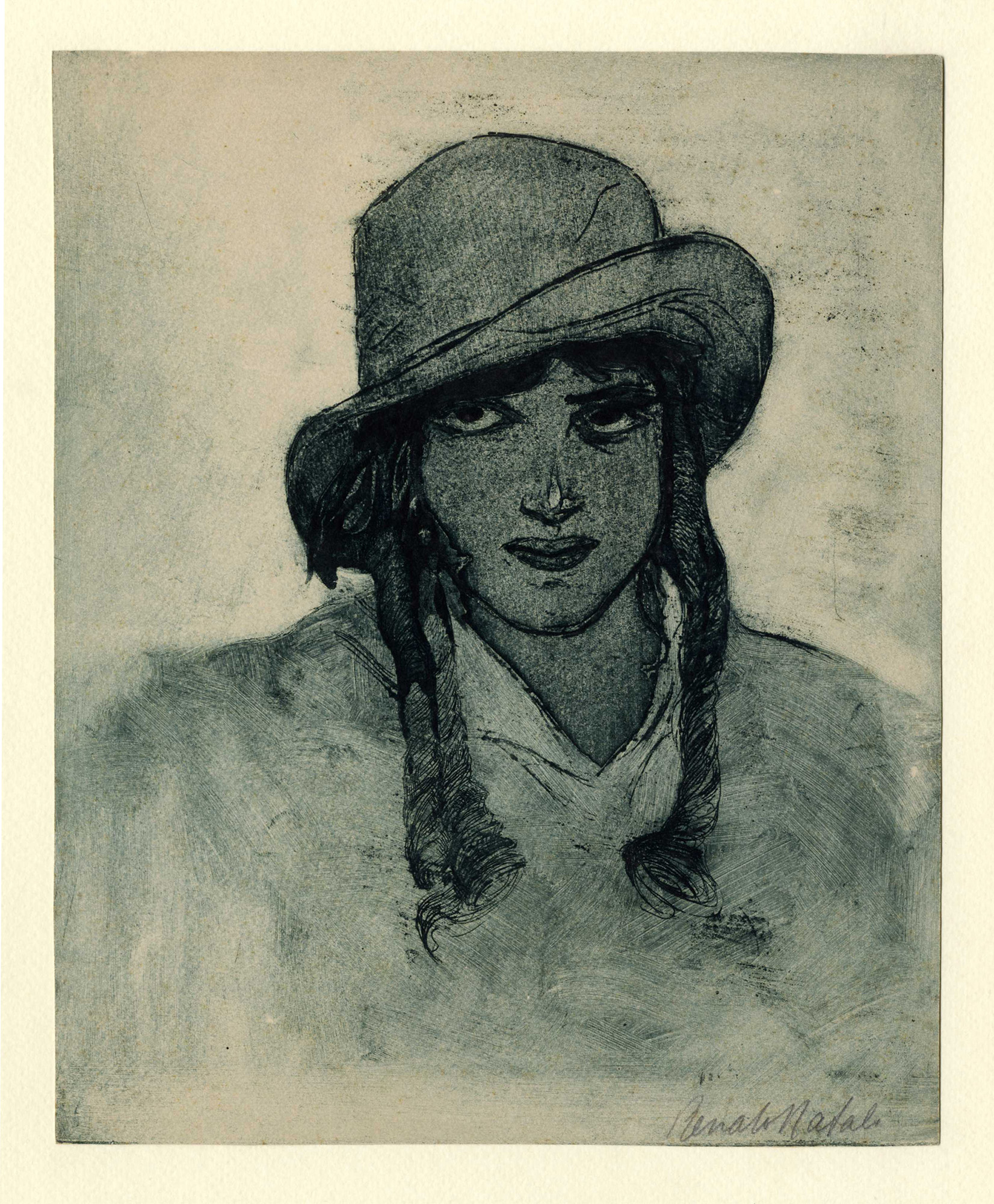 Renato Natali, Ritratto di ragazza con cappello. Acquaforte e acquatinta. mm...
