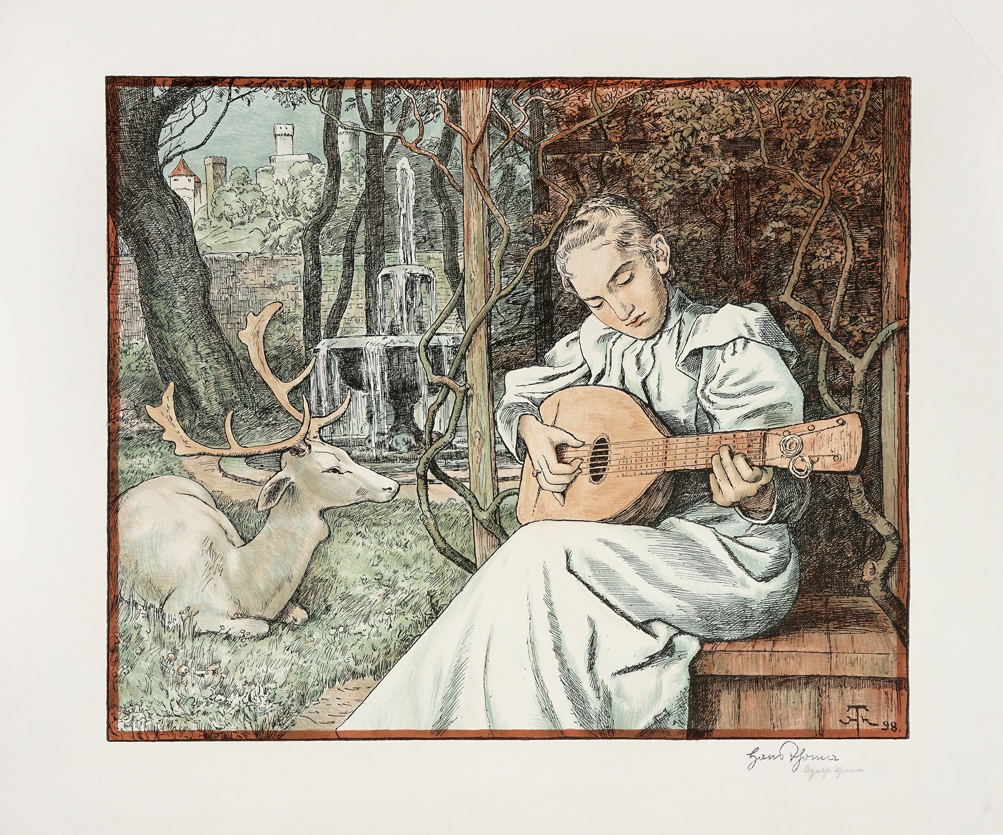 1) Die Märchenerzählerin (Il narratore). 1895. Litografia. mm 340x405. Foglio: mm 405x500. Monogrammata e datata in lastra in basso a destra. 2) Winterweben - Schneeflocken (Tessitura invernale - Fiocchi di neve). 1903. Litografia. mm 497x355. Foglio: mm 700x500. Monogrammata in lastra in basso a destra. Firmata a matita in basso a sinistra. 3) Gitarrenspielerin (Chitarrista). 1898. Litografia. mm 375x454. Foglio: mm 515x584. Monogrammata e datata in lastra in basso a destra. Firmata a inchiostro di china in basso a destra. (3) Minime pieghe e strappetti ai margini. Incisi in buono stato conservativo.