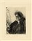 Acquaforte. mm 155x115. Foglio: mm 325x250. Firmata in lastra in basso a sinistra. Di questo stesso soggetto esiste anche la variante "II", dove l'artista completa la lastra aggiungendo vari tratti di fumo posti tra la figura e lo specchio. Esemplari eseguiti tra il 1891 ed il 1893. (1) Tracce di nastro adesivo al verso, altrimenti ottima conservazione.
