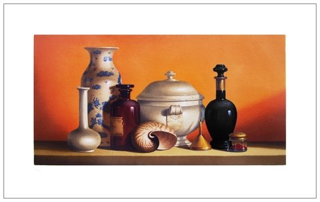 ANTONIO NUNZIANTE 1956 Natura silente 1997/1999 Serigrafia polimaterica a 36 colori es.32/150. Firma in b. a d. (60 x 100 foglio – 40 x 80 ser.) Soggetto eseguito dall’artista in esclusiva per la galleria Orler, Favaro Veneto.
