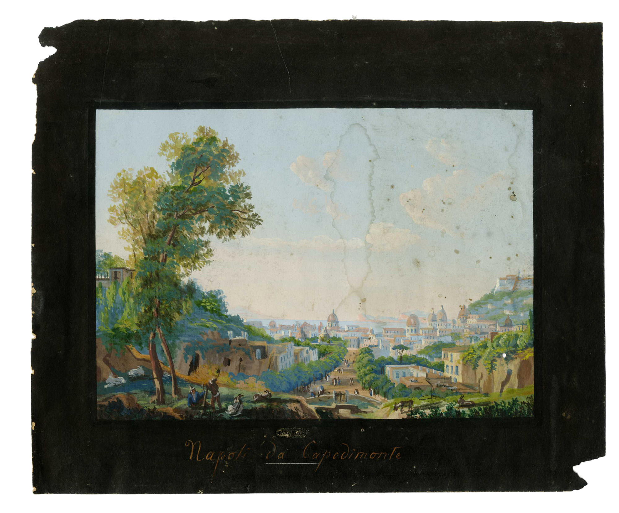 Coppia di guazzi su carta. mm 205/210x250/300. Le vedute riprendono Napoli da Capodimonte e Napoli da sopra Positano. (2) Gore e tracce d'uso sparse. Buona conservazione.