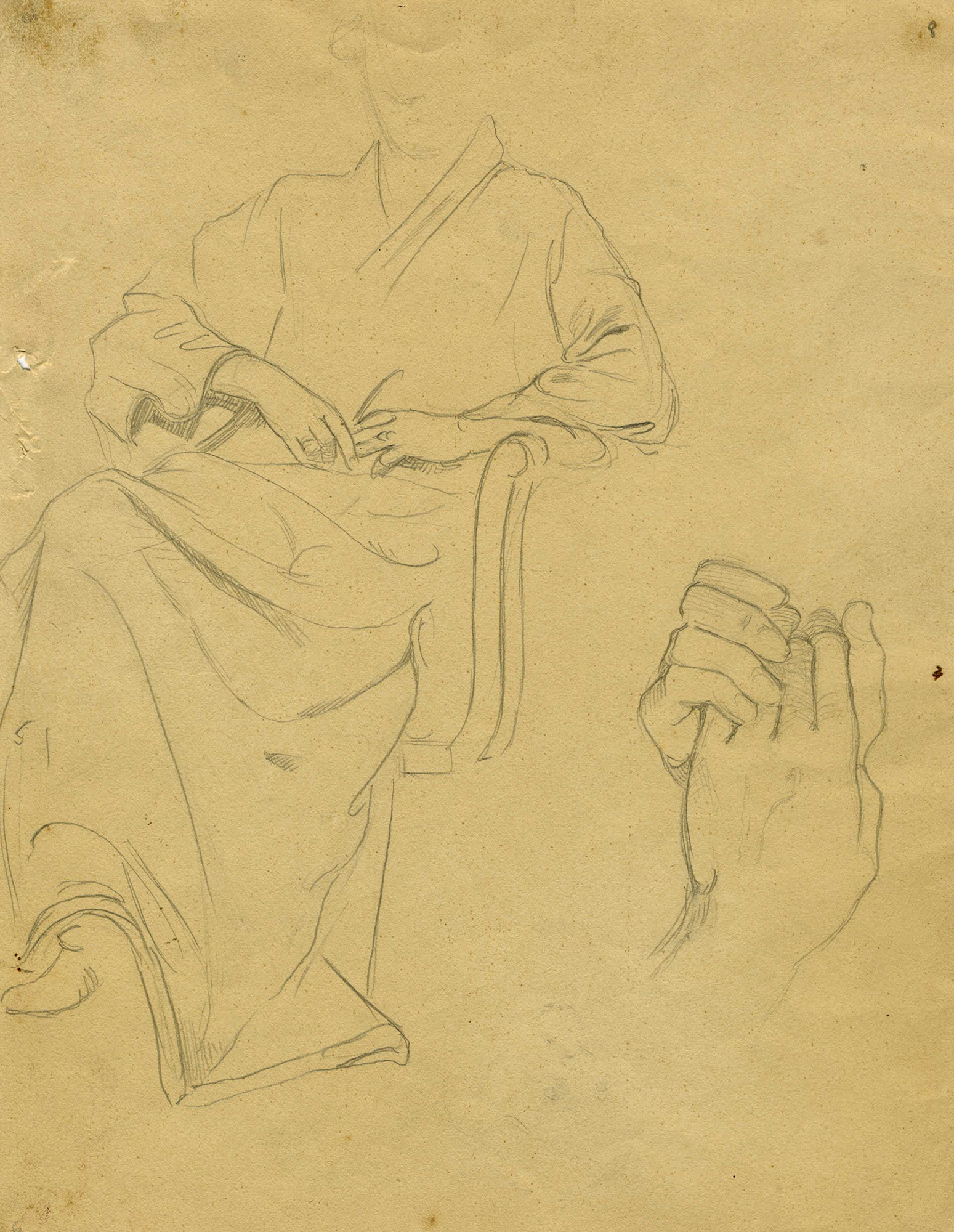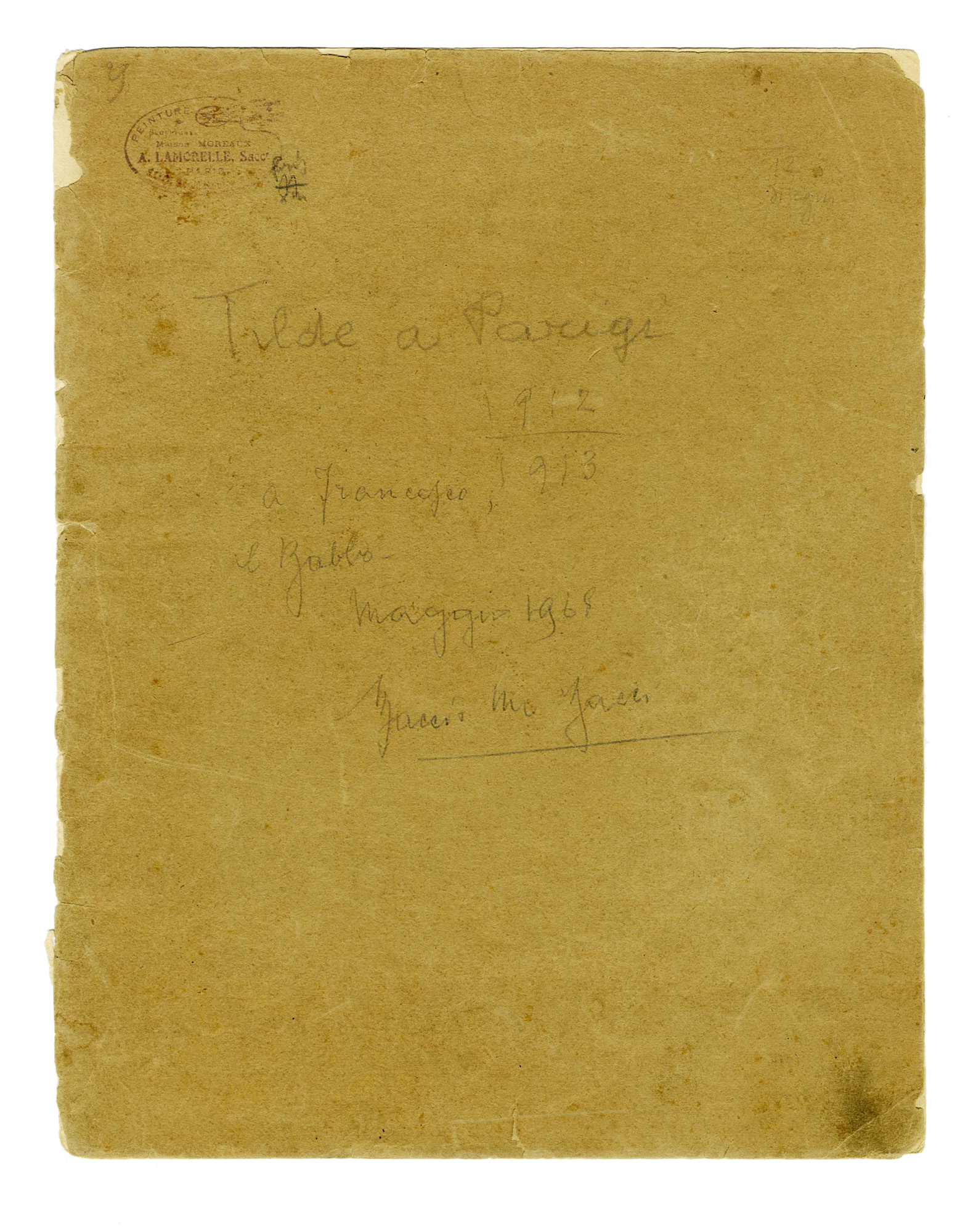 Matita su carta. mm 310x247 ca a foglio. A quello che era originariamente il piatto anteriore dell'album, ora a fogli sciolti, riportati il titolo, la data, la firma e la dedica al figlio Francesco, con la data in cui sono stati regalati i disegni. Provenienza: Francesco Bacci, erede dell'artista; Collezione Bongini. (6) Difetti vari.