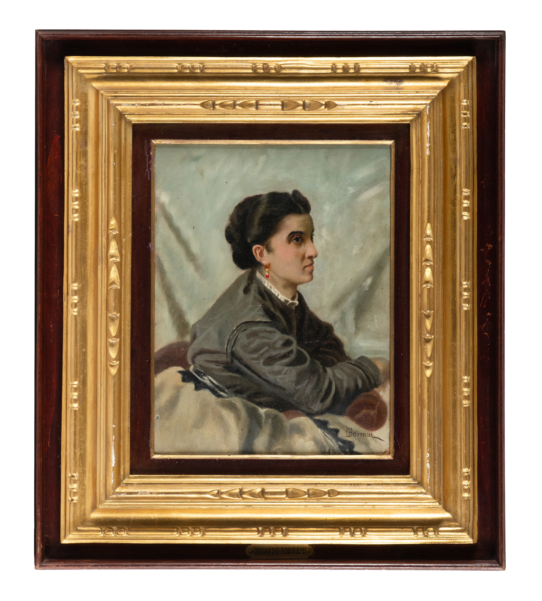 Odoardo Borrani, Ritratto femminile. Olio su cartoncino. cm 31,5x23,5....