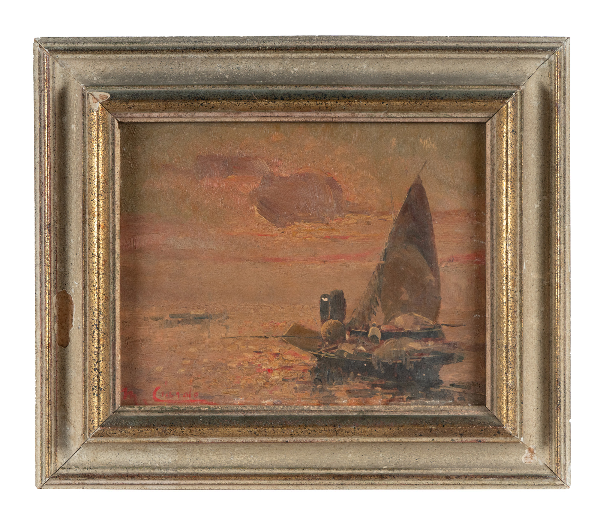 Maurizio Ciardo, Vela sull'acqua. 1930. Tempera su masonite. cm 24x30....