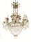 in metallo dorato e dipinto, collana di perle sfaccettate e cristalli pendenti, terminante nella parte superiore con una corona stilizzata, a tre ordini di luci per complessive ventiquattro fiamme, alt. cm 145