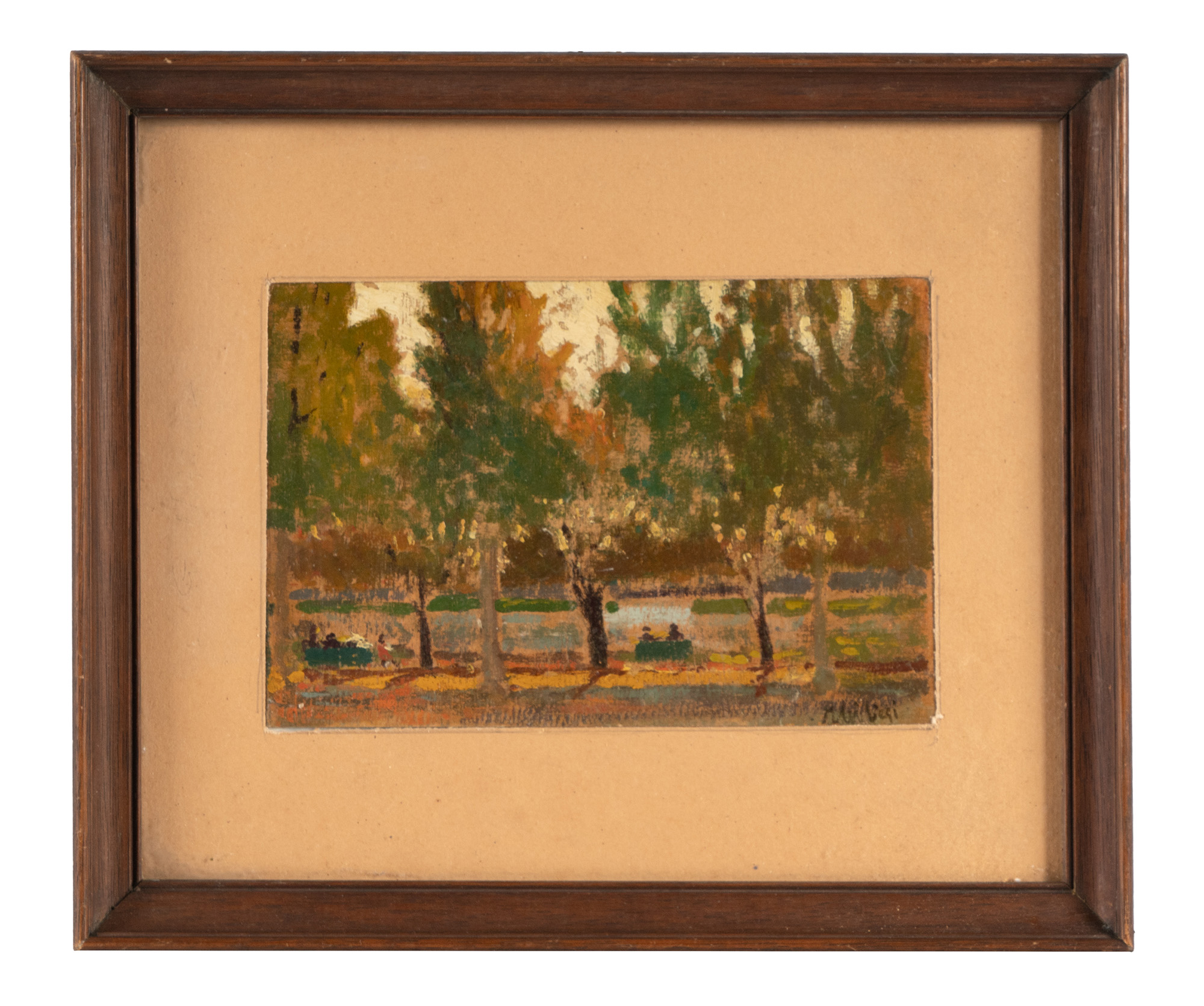 Luigi Levi (detto Ulvi Liegi), Il parco. 1900. Olio su cartone. cm 13x19,5....