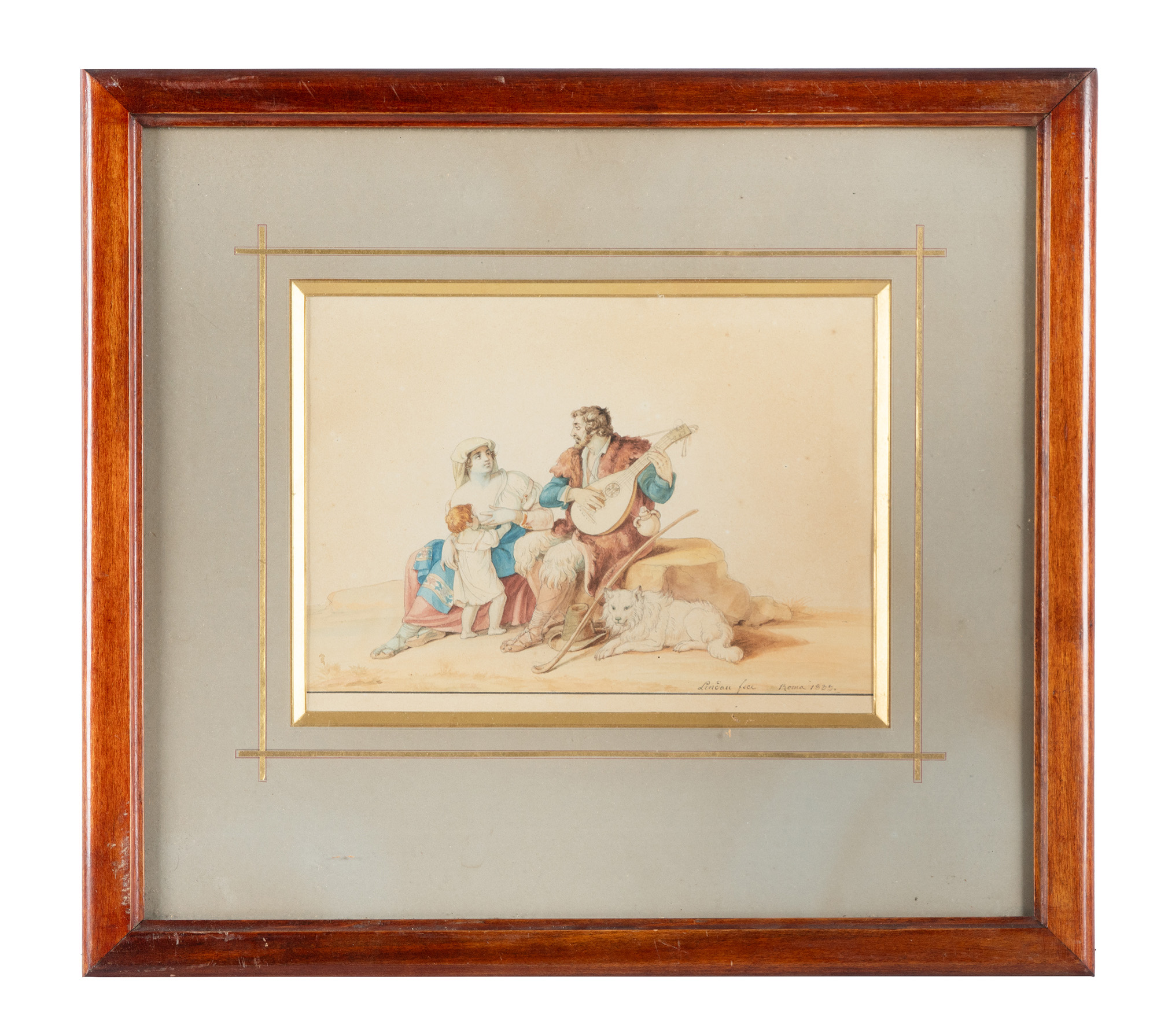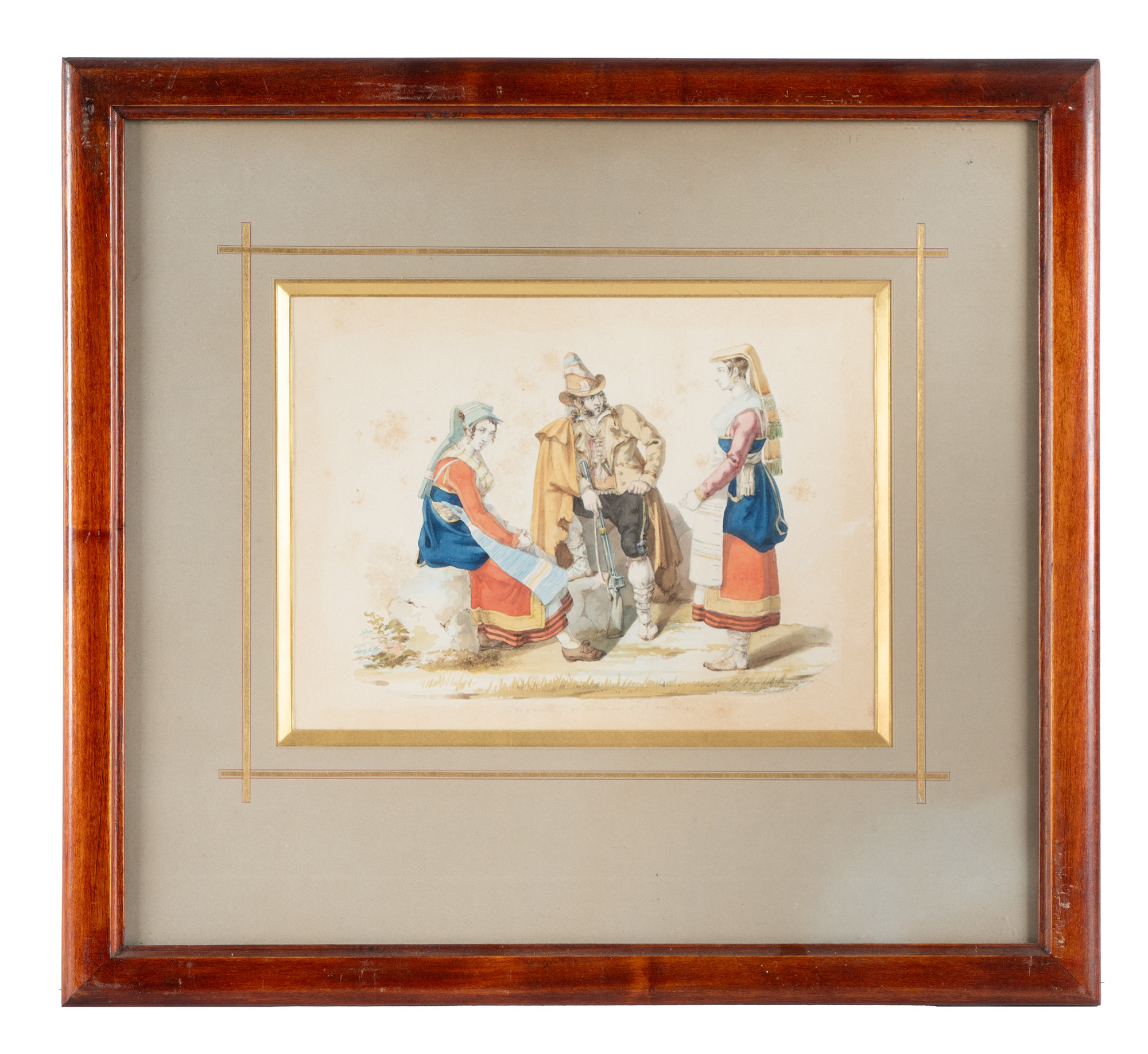 Matita, penna e inchiostro di china bruno e acquerello su carta. mm 200x270 (visibile). "Lindau Fecit. Roma 1833." in basso a destra. SI AGGIUNGE: Ferrari F., Briganti e donna. 1886. Acquerello su carta. mm 195x265 (visibile). Firmato e titolato a matita in basso a destra. (2) Entrambe le opere in cornice: cm 43x47,5 ca. cad. Bruniture minime diffuse, buona conservazione generale.