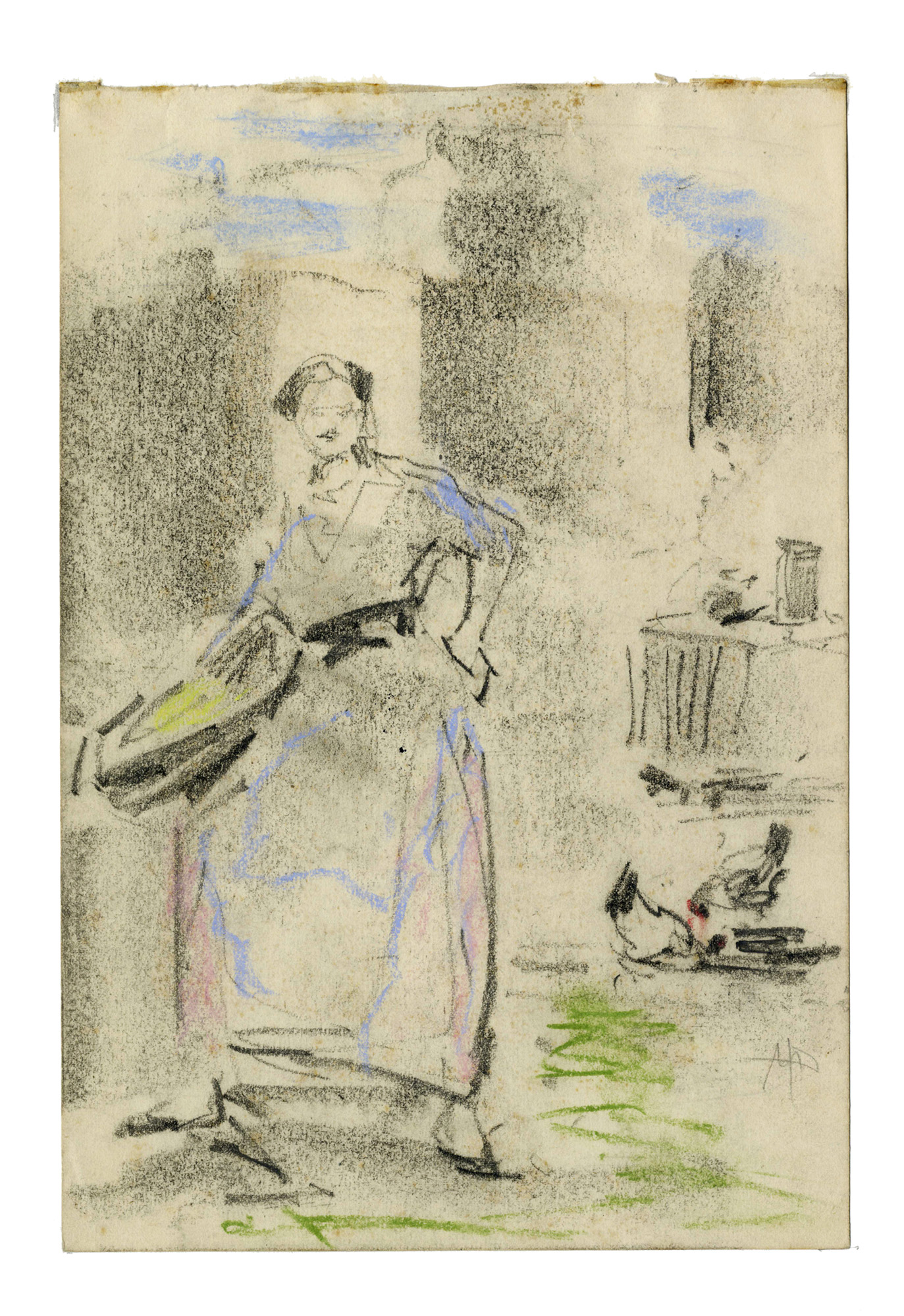 Pompeo Mariani, Contadina. Matita, carboncino e pastello su carta. mm...