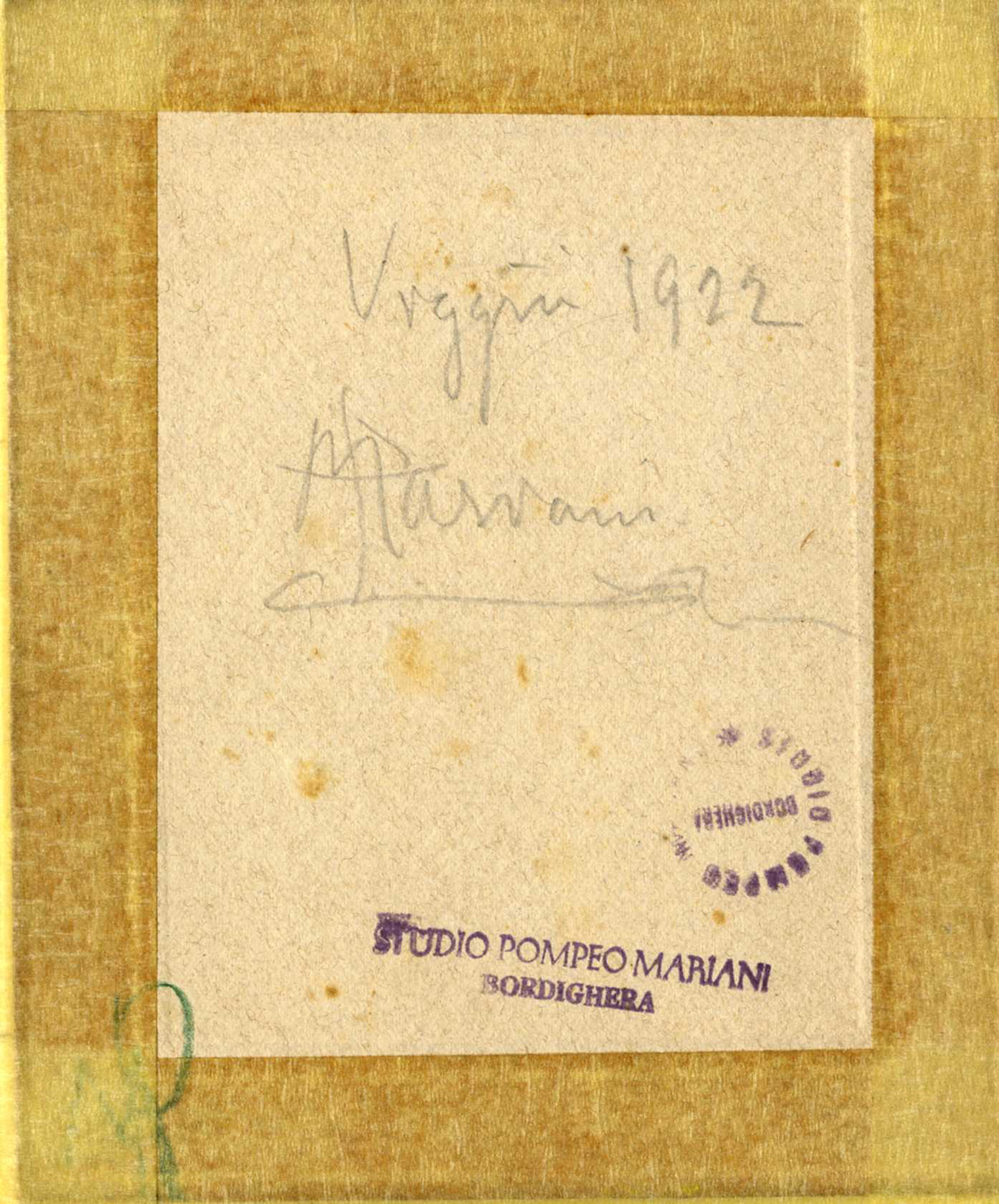 Matita e acquerello su carta. mm 145x120. Al verso, doppio timbro dello Studio dell'artista, firma e data a matita. (1) Opera completamente applicata a passe-partout oliva.