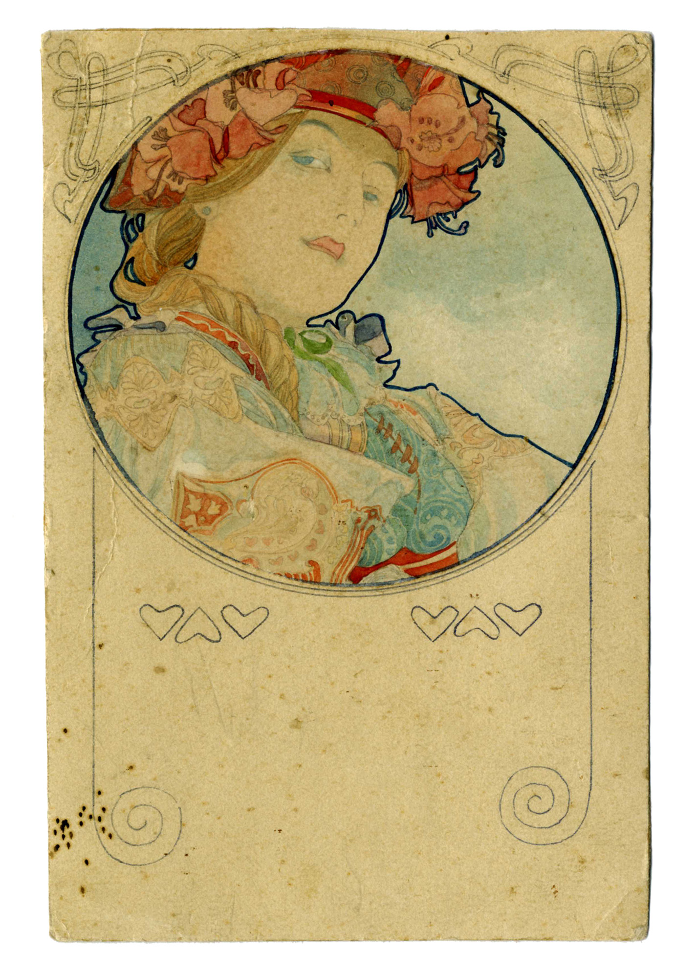 Alphonse Mucha [attribuito a], Bozzetto per cartolina postale.