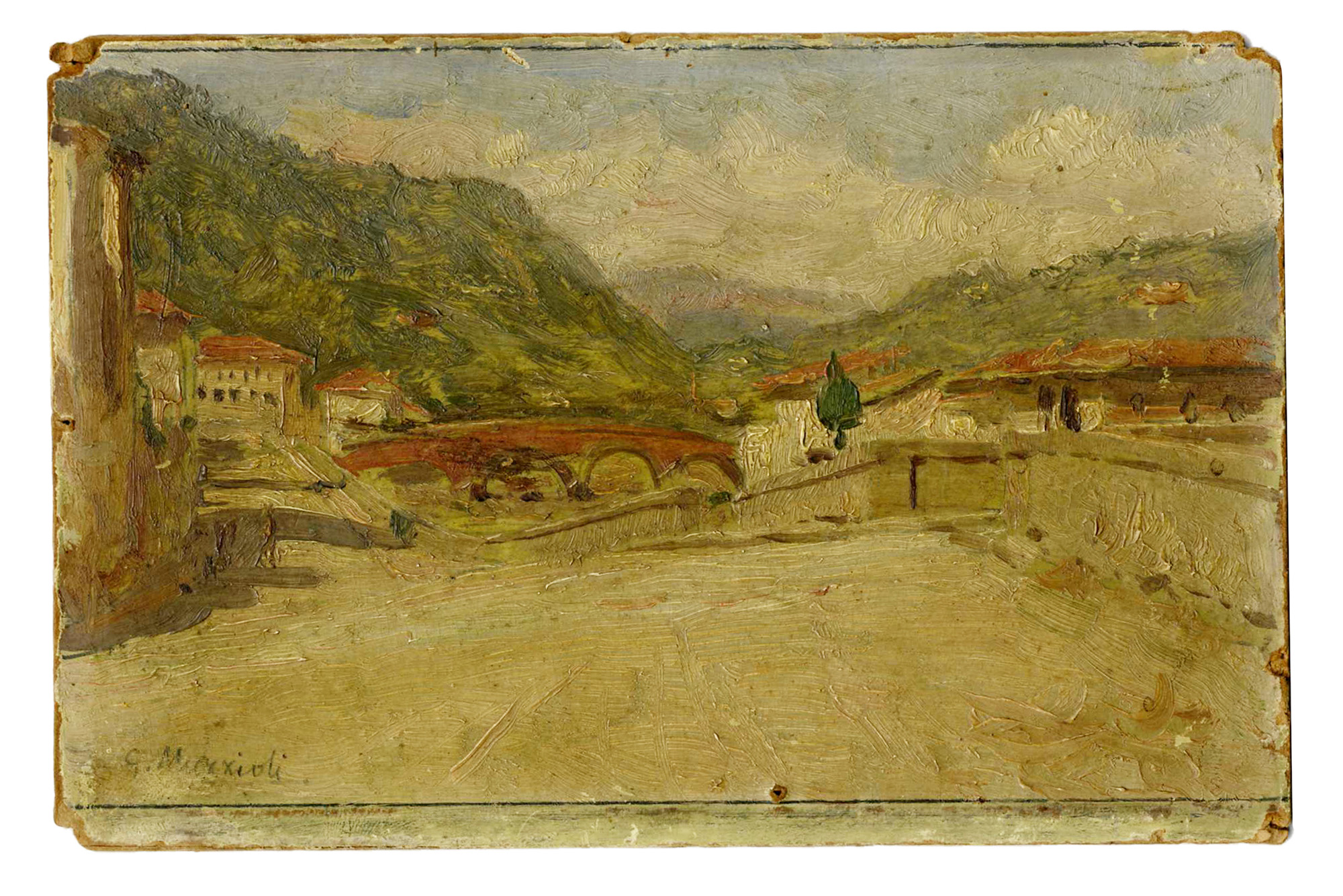 Giovanni Muzzioli, Pescia. 1891. Olio su cartone. cm 11x17. Firmato in basso...