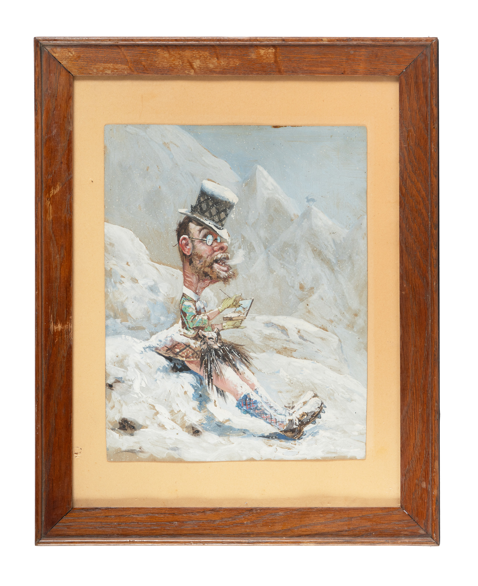 Acquerelli su carta. mm 270x210. Iscritto al verso "E. Lapi - Caricatura di T. Signorini" a matita. Etichetta a stampa recate i dati dell'opera applicata al verso del cartone di supporto. (1) In cornice: cm 41,5x32,5. Foglio leggermente brunito con minimi difetti. Alcuni punti di colore crettato, altrimenti buona conservazione generale.