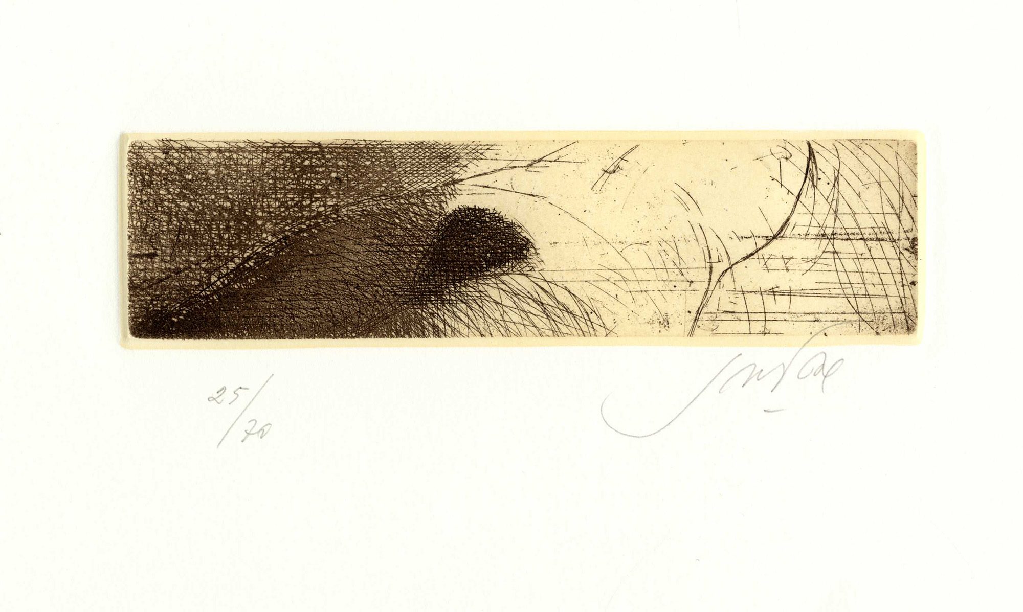 Acquaforte. mm 52x195. Foglio: mm 500x338. Firma e tiratura in basso ai lati. Es. 25/70. Conservata entro la cartella editoriale originale. (1)