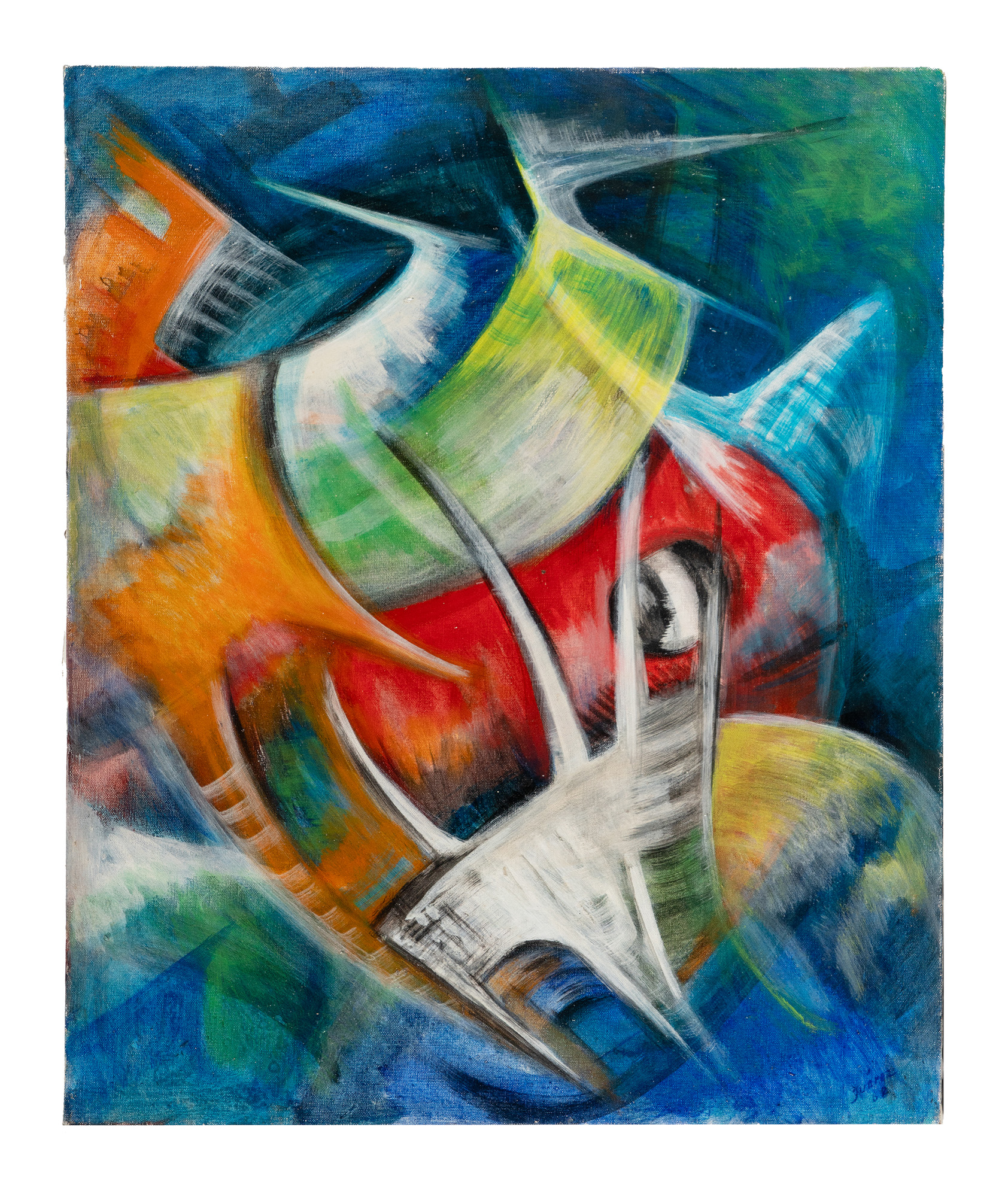Olio su tela. cm 61x50. Firmato e datato in basso a destra. Nome d'artista e data iscritti al verso. Tre timbri parzialmente leggibili applicati alle tre assi del telaio. (1) Minimi mancanze marginali, altrimenti ottima conservazione.