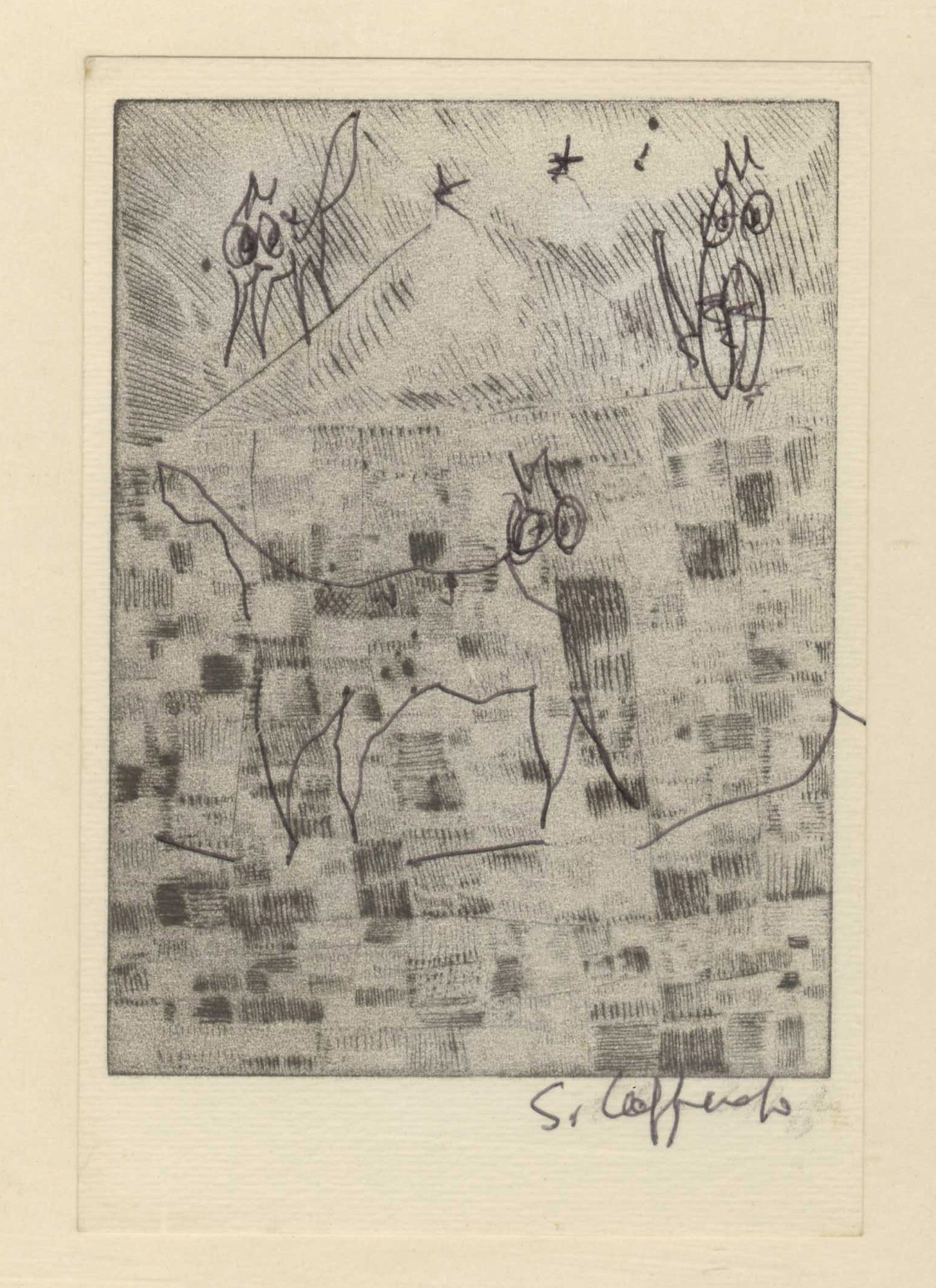 Silvio Loffredo, I gattoni. Incisione con intervento a mano a penna a sfera...