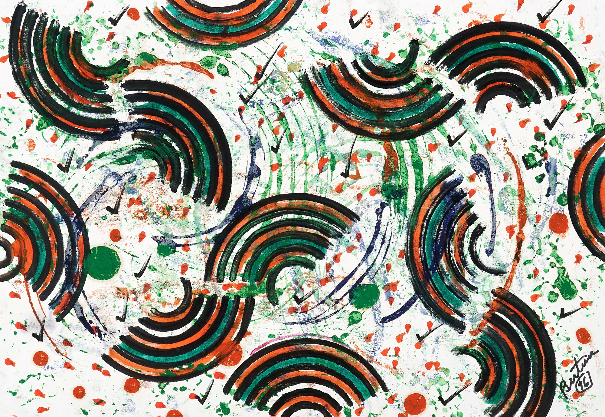 Tecnica mista su carta. mm 34x482. Firma e data a pennarello nero in basso a destra, controfirma e controdata al verso. Conservato entro cartella originale. Provenienza: Collezione Battisti. (1)