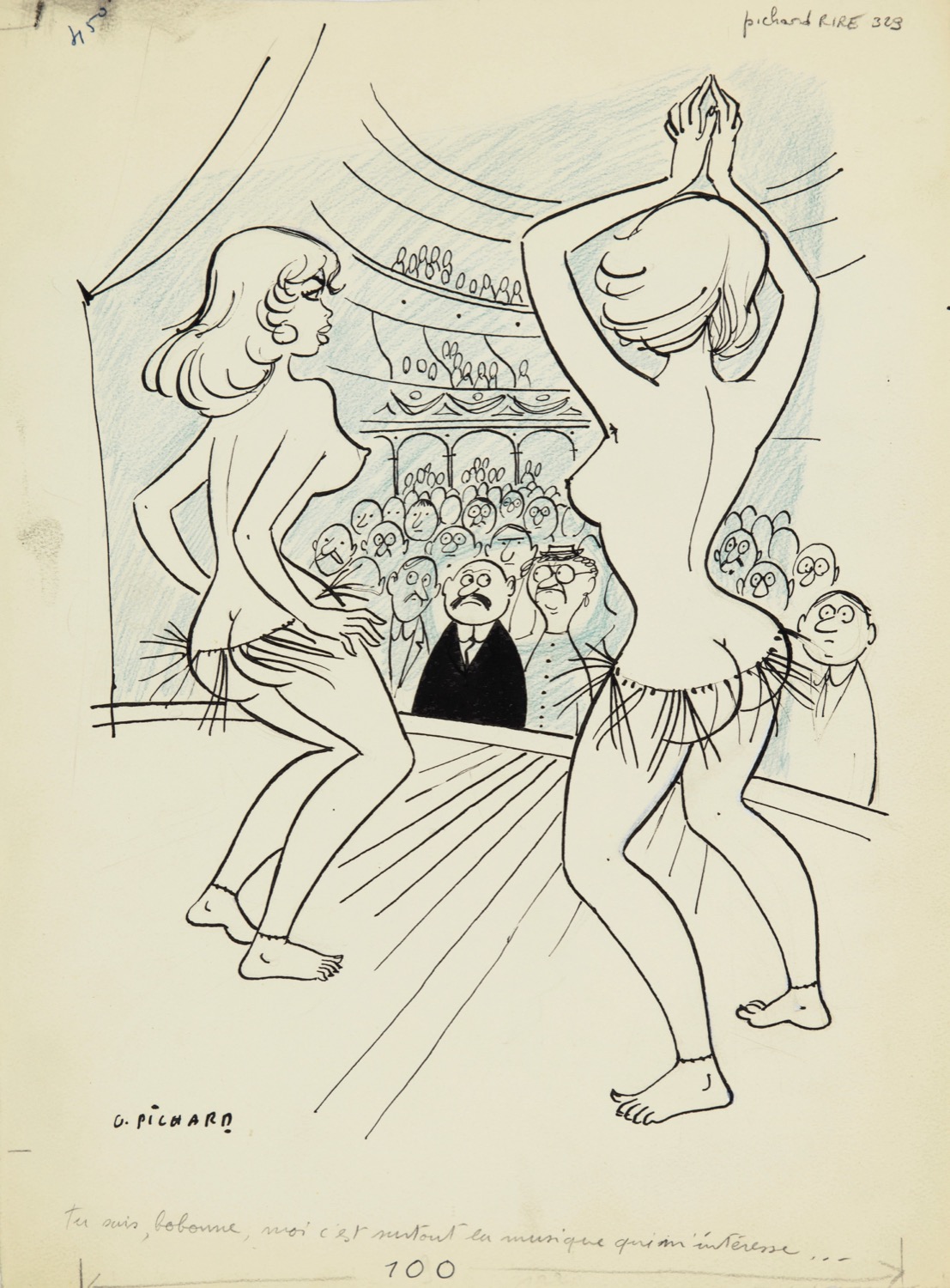 Illustrazione originale realizzata da Pichard alla fine degli anni '50 per il giornale satirico francese Le Rire. Firmata.