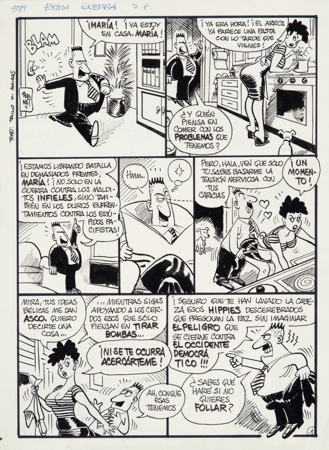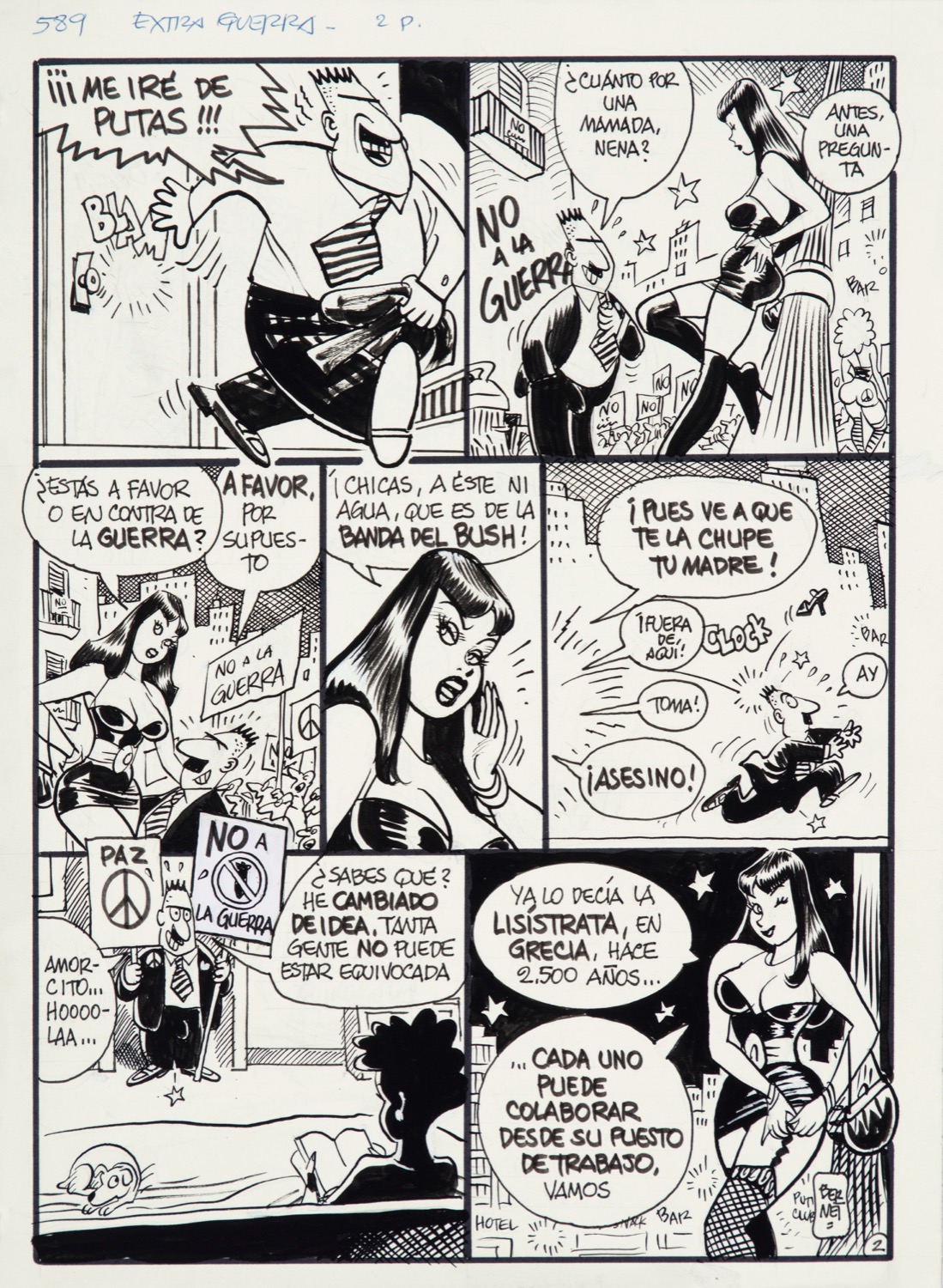 Storia completa composta di 2 tavole originali realizzate da Bernet per un‘avventura di "Chiara di notte", pubblicata per la prima volta sulla rivista spagnola El Jueves nei primi anni ‘90. Firmata in entrambe le pagine.