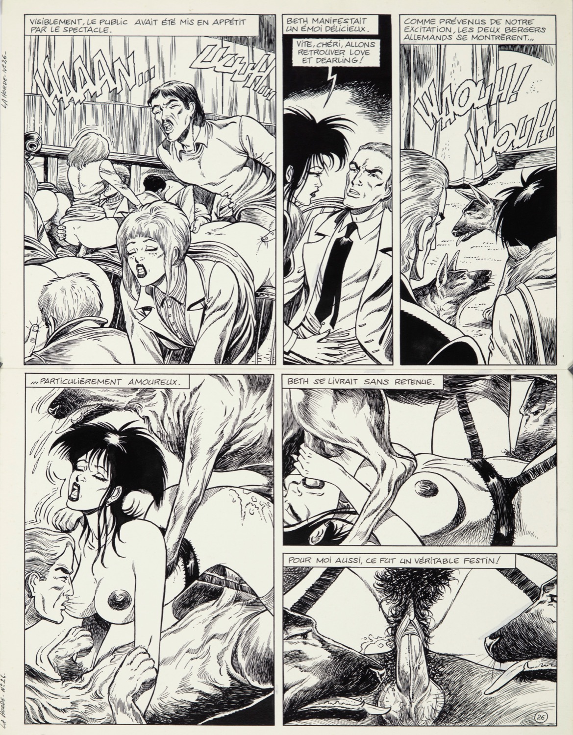 Tavola originale realizzata da Géron durante gli anni '80 per la serie erotica "La Horde". Su due pannelli.