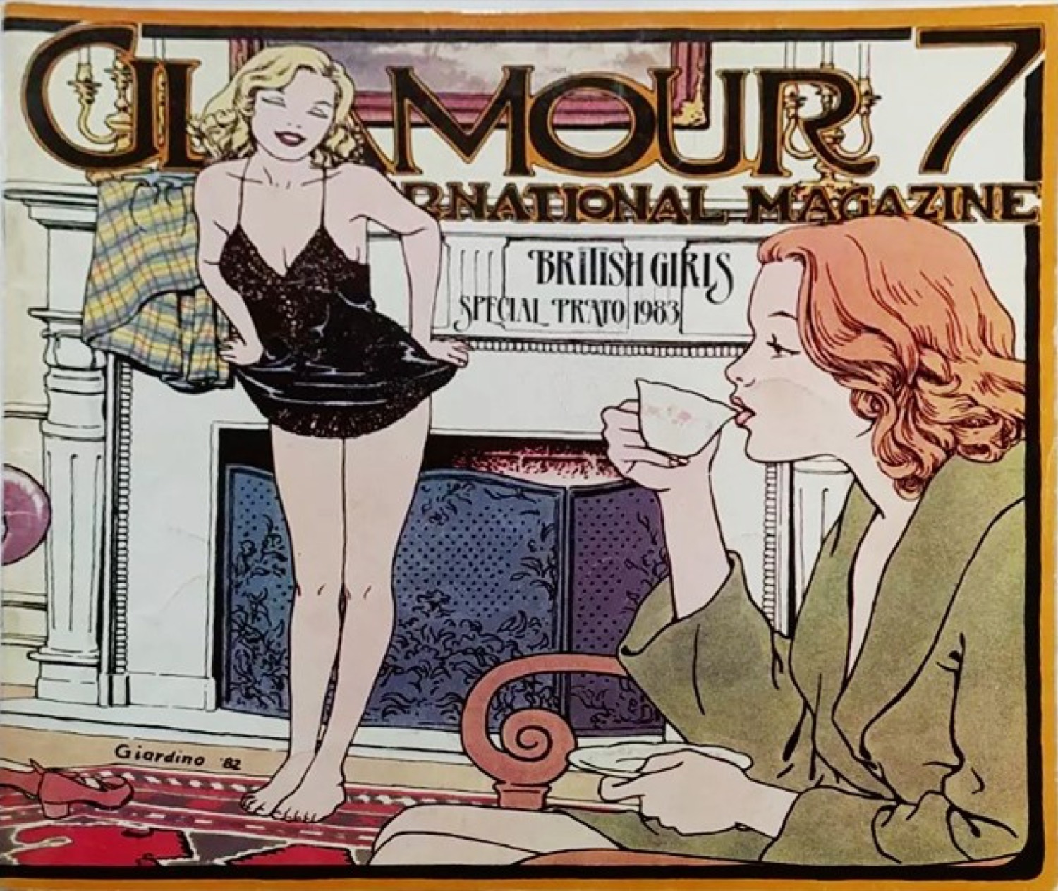 Originale di copertina (e quarta di copertina) realizzato da Giardino per la rivista dedicata all'erotismo d'autore Glamour International Magazine n. 7 del febbraio 1983. Considerato a livello internazionale uno dei massimi esponenti della ligne claire, il maestro bolognese è qui ai suoi massimi livelli artistici. Un'opera da museo. Firmata al fronte e recante timbro e firma al retro.