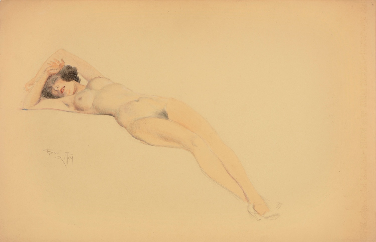 Disegno originale realizzato dal celebre illustratore francese Giffey nel 1928. Fori di affissione agli angoli e piccoli strappi ai margini. Firmato al fronte e datato al retro.