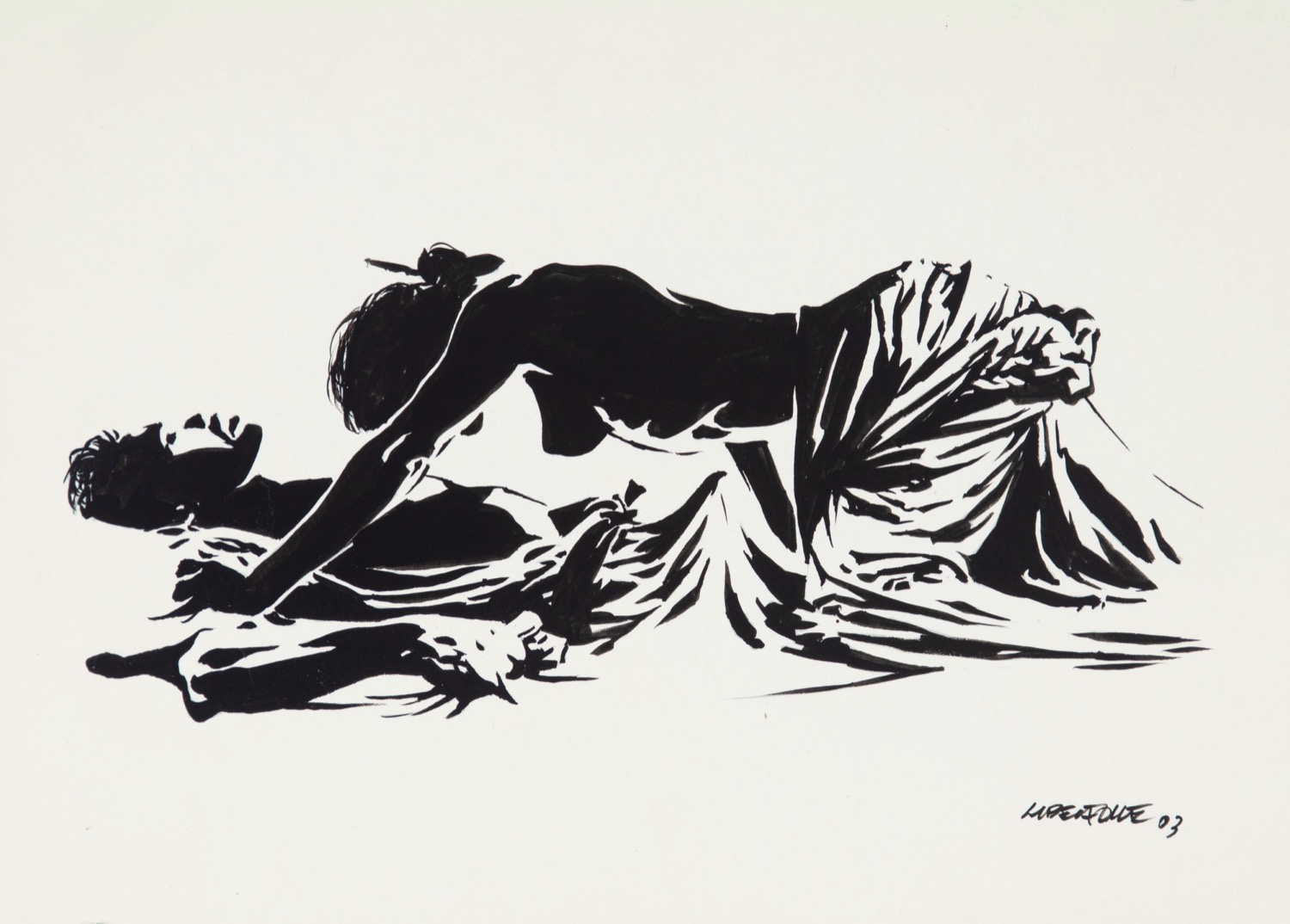 Illustrazione originale realizzata da Liberatore per il portfolio "B. & W." edito dalle Edizioni Di nel 2008. Un raffinato erotismo degno di uno dei grandi maestri internazionali dell'eros. Firmata e datata.