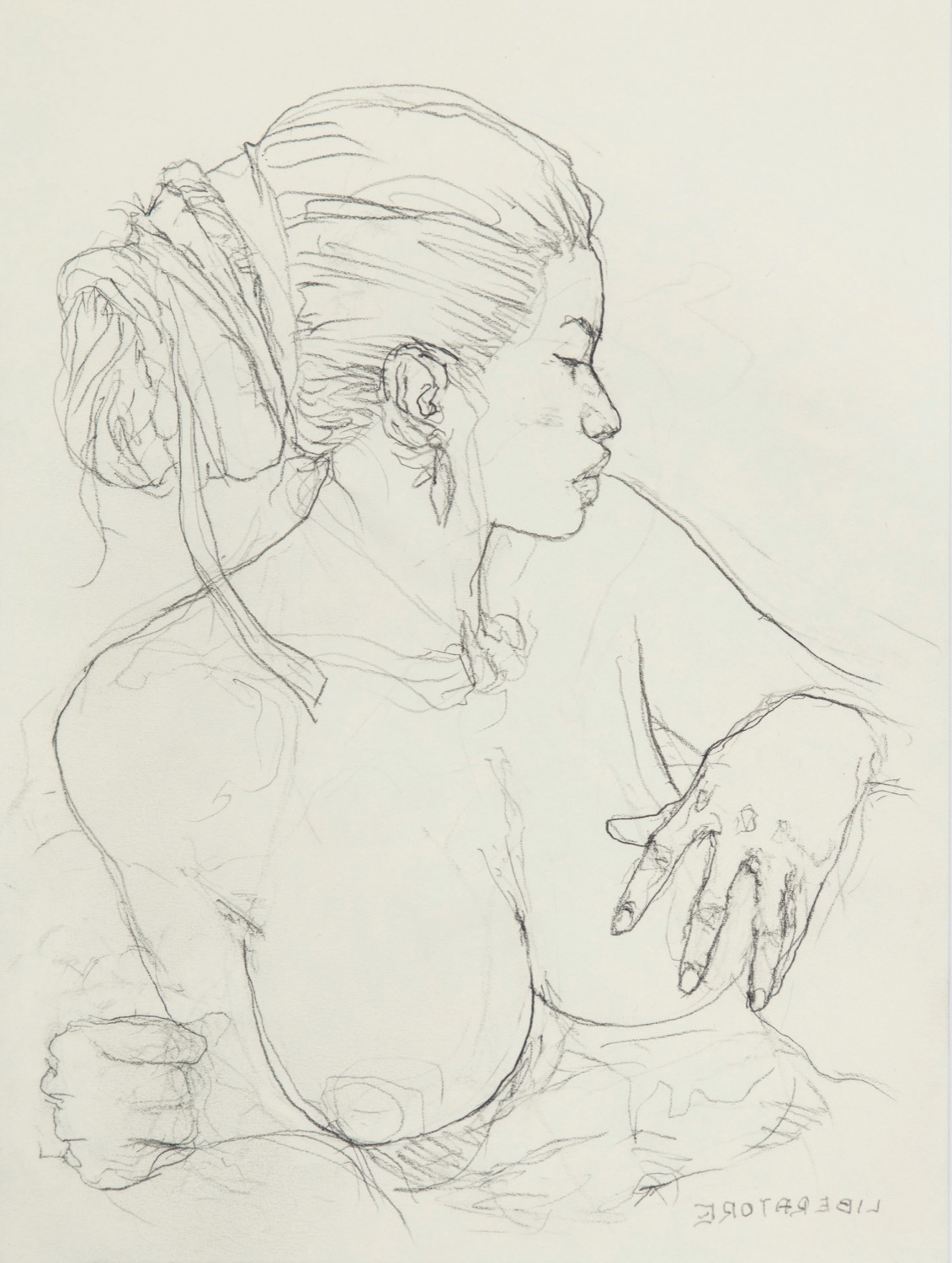 Illustrazione originale realizzata da Liberatore durante un suo vernissage in Belgio. Un esercizio di stile dell'autore abruzzese che decise di realizzare quest'opera con la sola mano sinistra. Firmata.