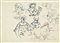 Disegno realizzato a otto mani da Paolo Eleuteri Serpieri, Massimo Frezzato, Michael Jensen e Luca Boschi in occasione della Fiera del Fumetto di Prato del 1989. Tracce di foxing, lievi pieghe e piccoli strappi al margine superiore, lieve ondulatura della carta. Firmato da ciascuno e datato.