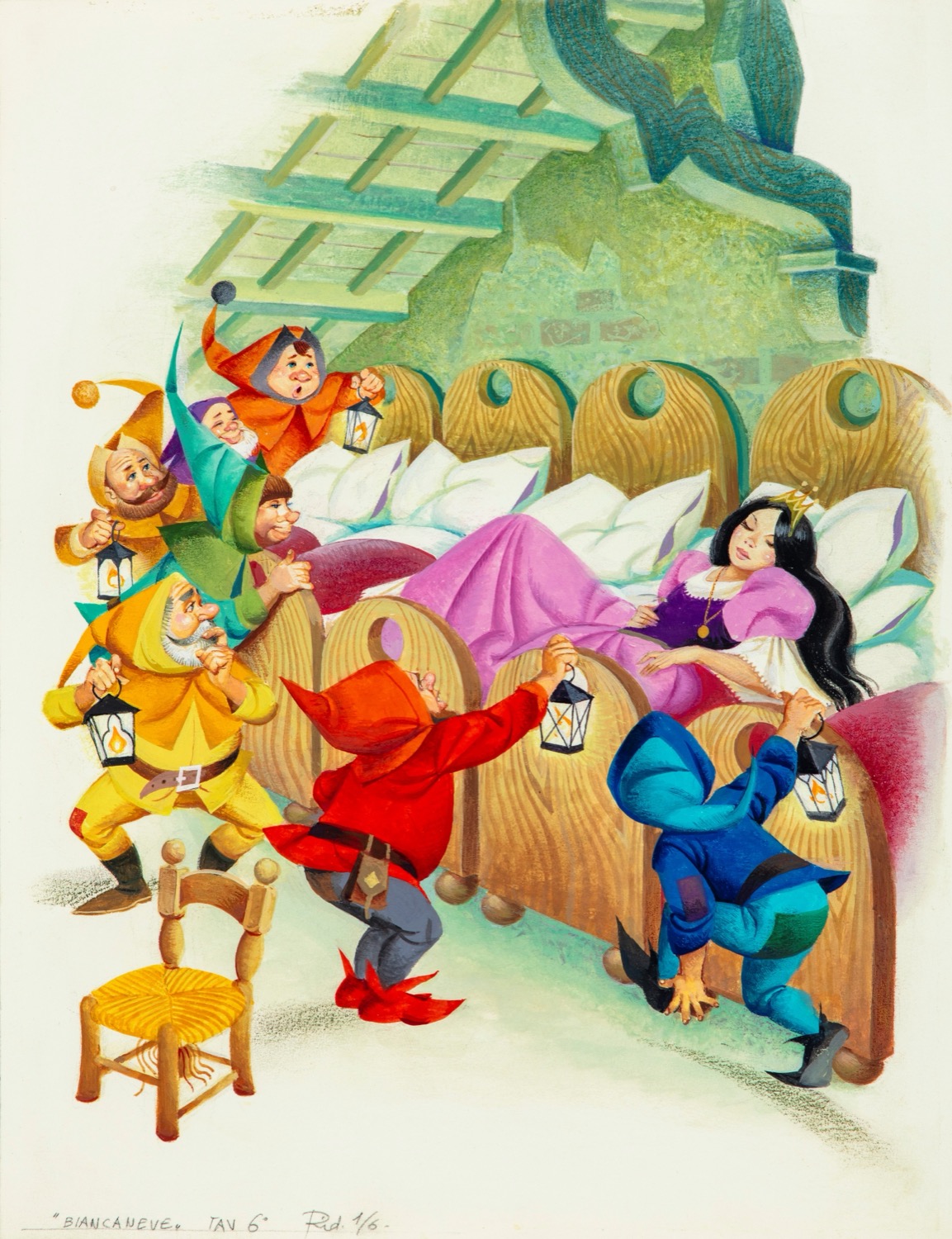 Illustrazione originale realizzata da Baraldi per "Biancaneve e i sette nani", edita dalla casa editrice Larus nel 1985.