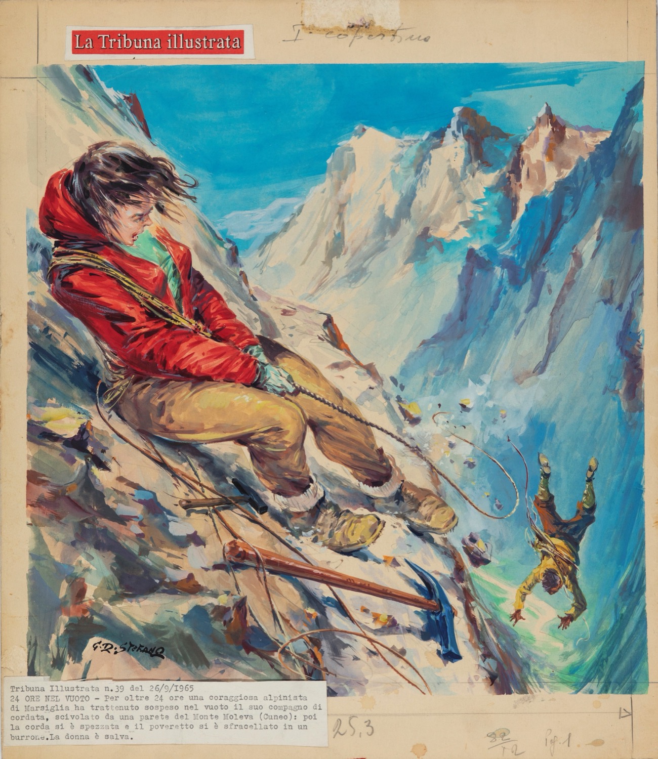 Originale di copertina realizzato da Di Stefano per La Tribuna Illustrata n. 39 del 1965. Firmato.