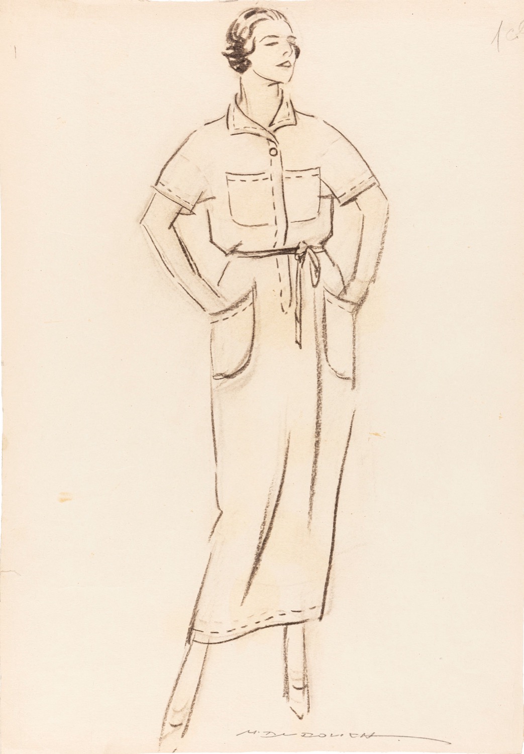 Illustrazione originale realizzata da Dudovich tra il 1919 e il 1921 per le pagine de Il Resto del Carlino di Bologna dove i grandi magazzini La Rinascente promuovevano i propri capi di abbigliamento. Provenienza: collezione Mario Missiroli (direttore Il Resto del Carlino Bologna). Piccolo strappo al margine sinistro. Firmata.