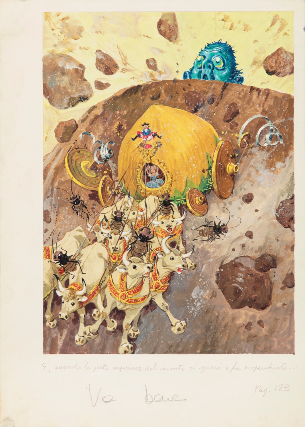 Illustrazione originale realizzata da Maraja per il romanzo "Il Barone di Munchhausen" di di Rudolf Erich Raspe, edito dalle Ed. Accademia nel 1977.