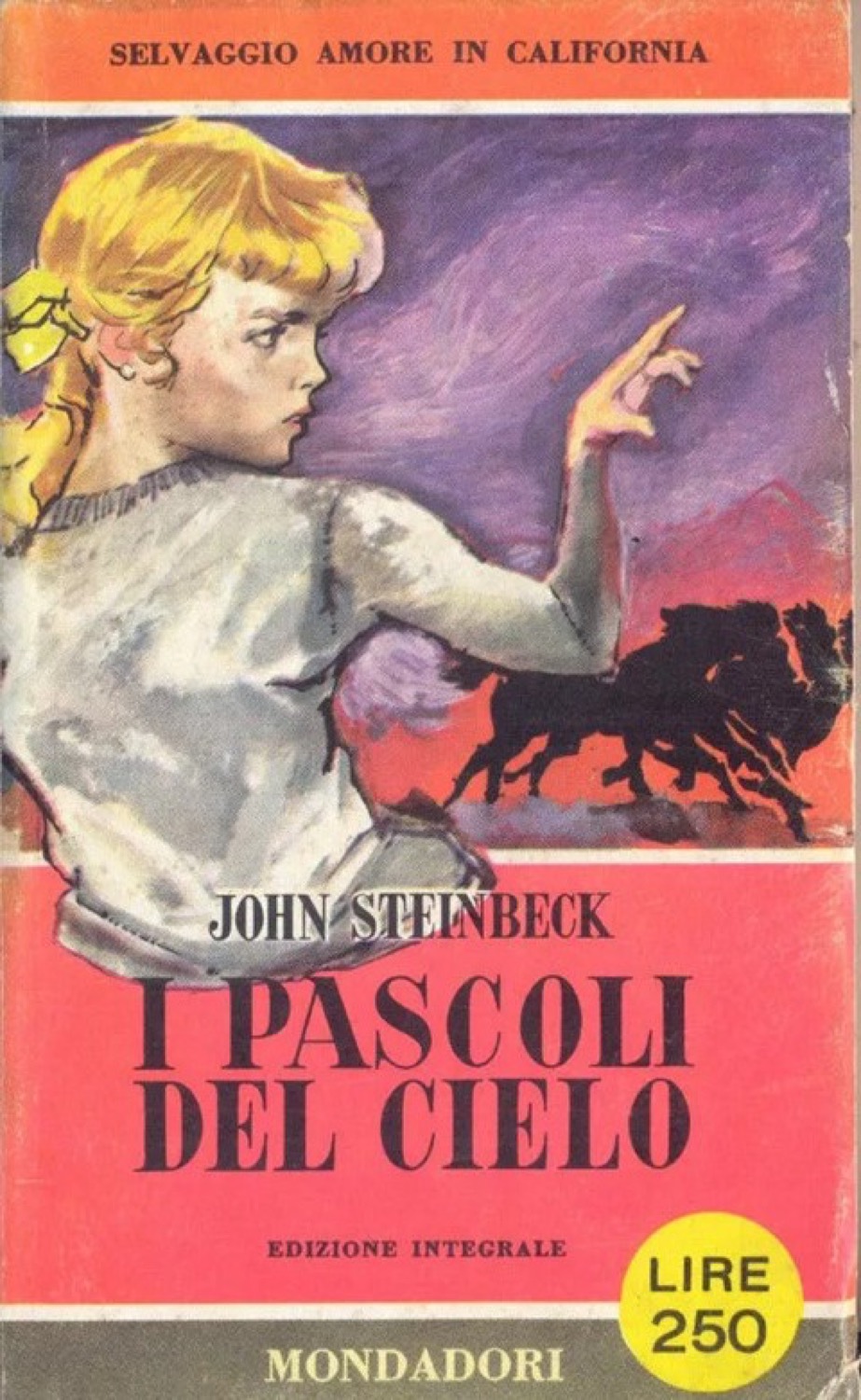 Originale di copertina realizzato da Tempesti per il romanzo "I pascoli del cielo" di John Steinbeck, edito nella collana I libri del Pavone n.1 dalla Mondadori nel 1958. Firmato.