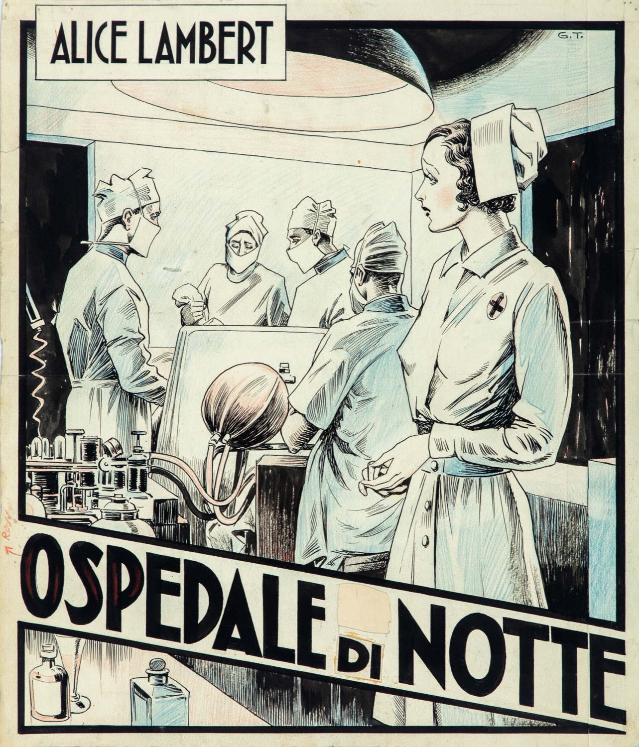 Originale di copertina realizzato da Toppi per il romanzo "Ospedale di notte" di Alice Lambert, edito da Nerbini negli anni '40. Pieghe. Firmato.