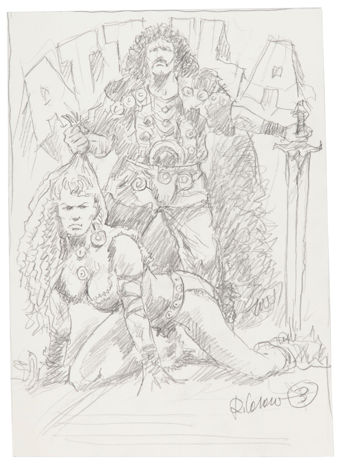 Bozzetto preliminare realizzato da Casaro per la locandina ufficiale del film "Attila flagello di Dio", diretto da Castellano e Pipolo con Diego Abatantuono e Rita Rusic nel 1982. Firmato.