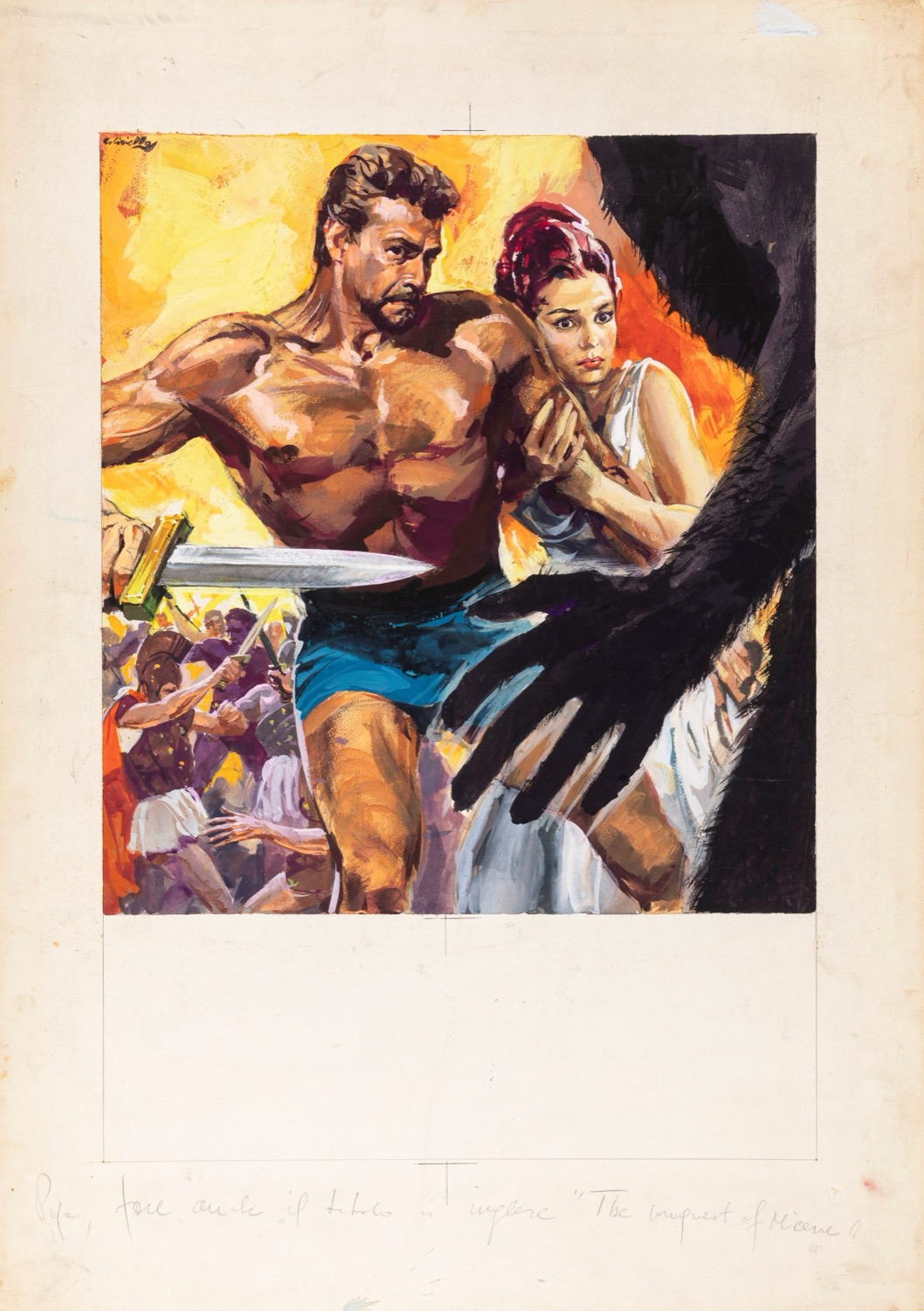 Bozzetto originale realizzato da Ciriello per la locandina ufficiale del film "Ercole contro Moloch", diretto da Giorgio Ferroni con Gordon Scott, Alessandra Panaro e Rosalba Neri nel 1963. Firmato.