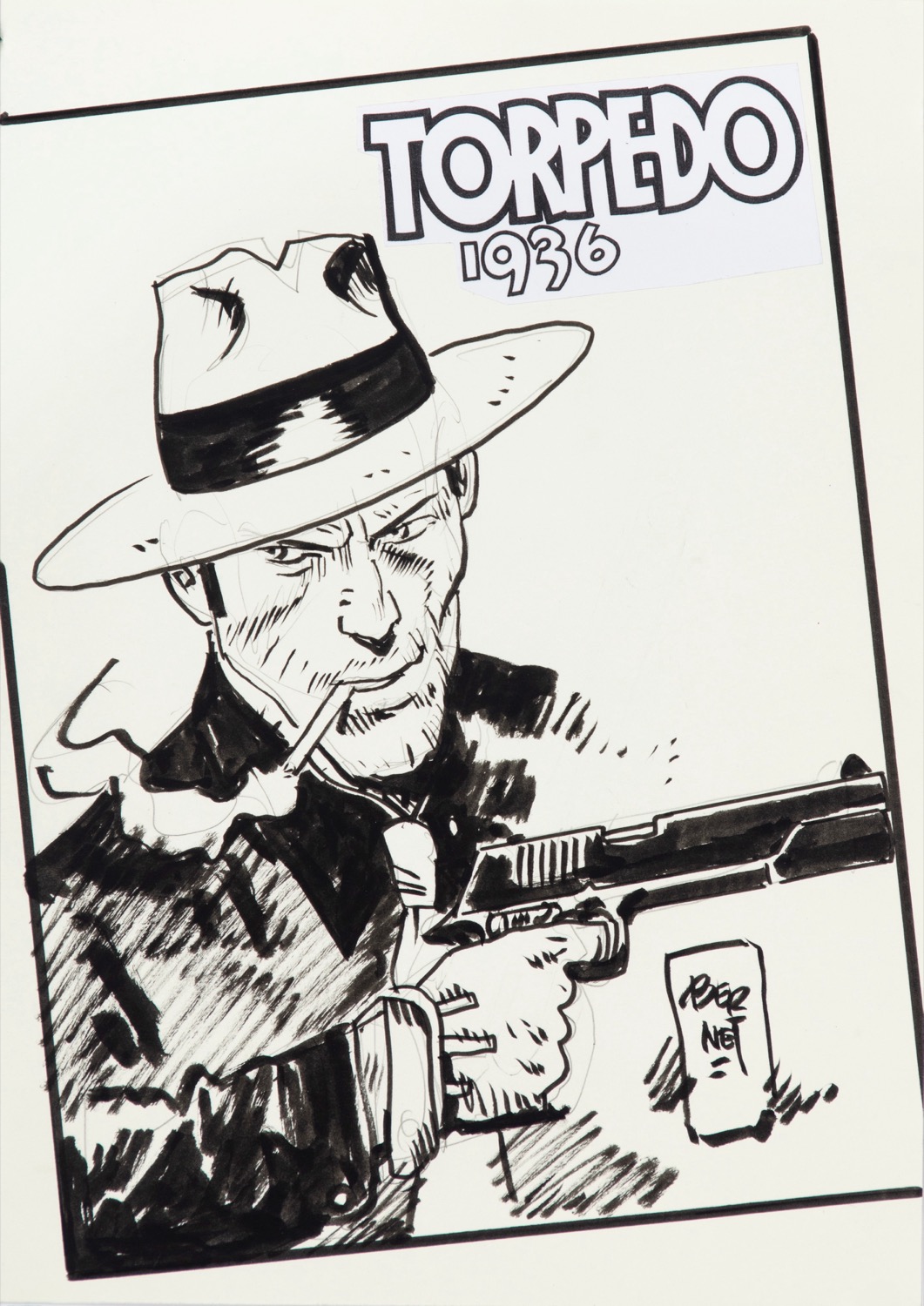 Illustrazione originale realizzata da Bernet per il suo Torpedo. Antieroe per antonomasia, Torpedo è protagonista di uno dei fumetti noir più amati e celebrati dal pubblico di tutto il mondo che rese l‘artista spagnolo il maestro indiscusso di questo genere. Firmata.