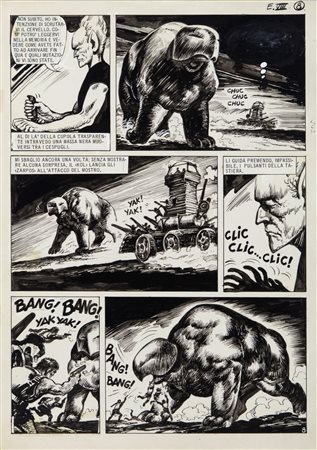 Tavola originale realizzata da Lopez per la seconda parte del suo capolavoro "L'Eternauta", edita per la prima volta in Argentina su Skorpio dalle Edictiones Record nel 1976 e successivamente in Italia su Lanciostory nel 1978. Pag. 8 (episodio VIII) della saga creata da Héctor Oesterheld, divenuta una delle pietre miliari del fumetto moderno. Metafora e tragico anticipatore della situazione politica argentina che da li a poco sfocerà nella dittatura, L'Eternauta è divenuto un simbolo di rivolta civile e di indipendenza intellettuale, che costò la vita al suo autore quando nell'aprile del 1977 Oesterheld fu prelevato da uno Squadrone della Morte entrando così a far parte della numerosa schiera dei desaparecidos argentini.